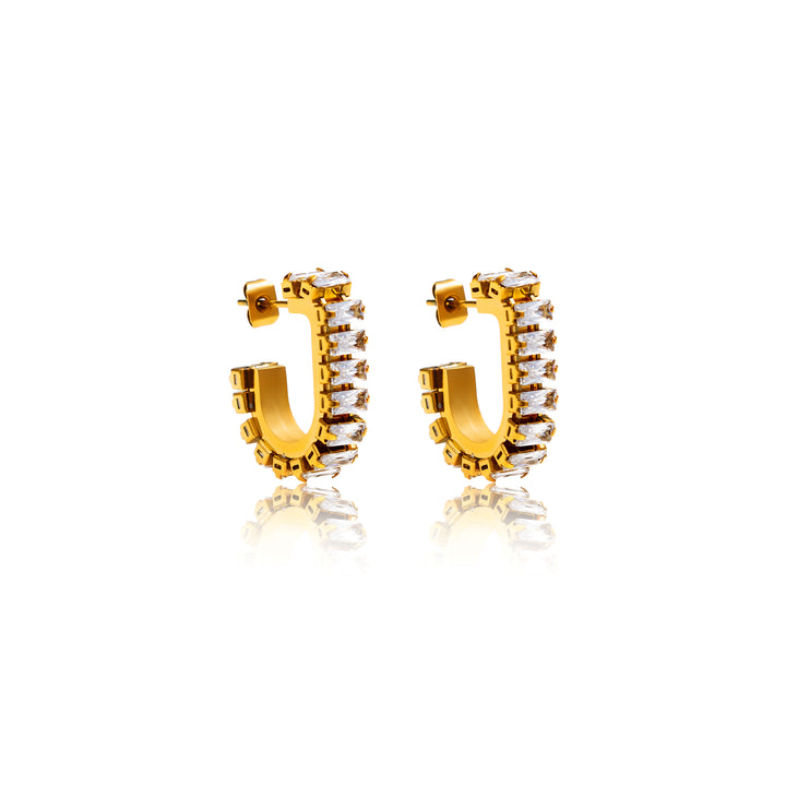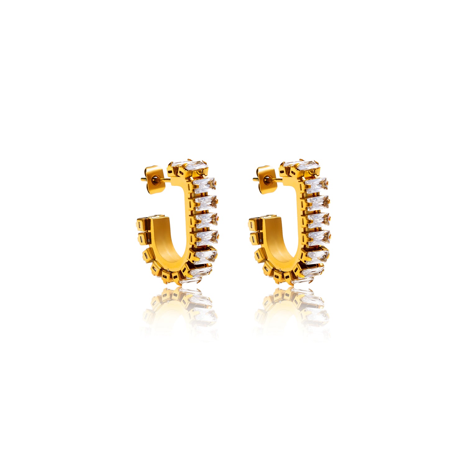 The material of these earrings is not specified. They are 18k gold-plated on stainless steel.