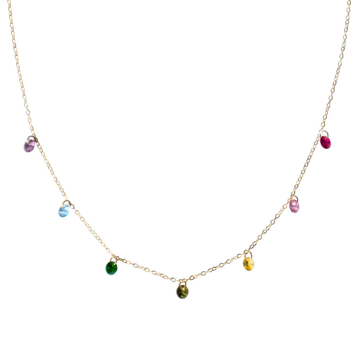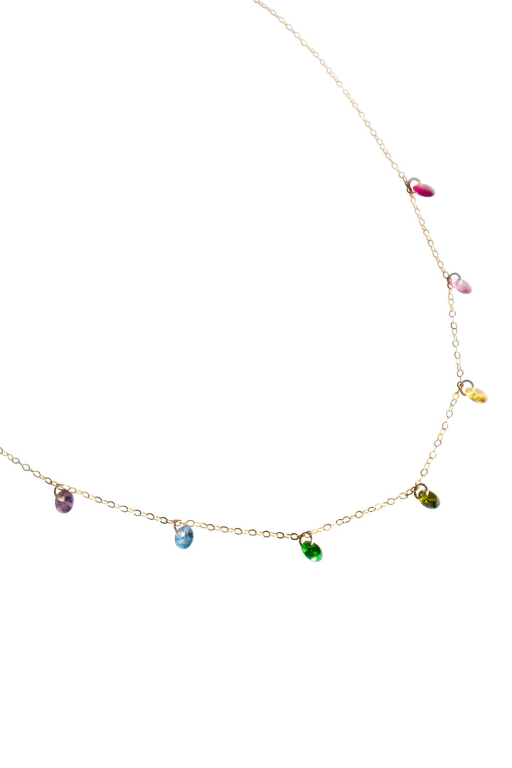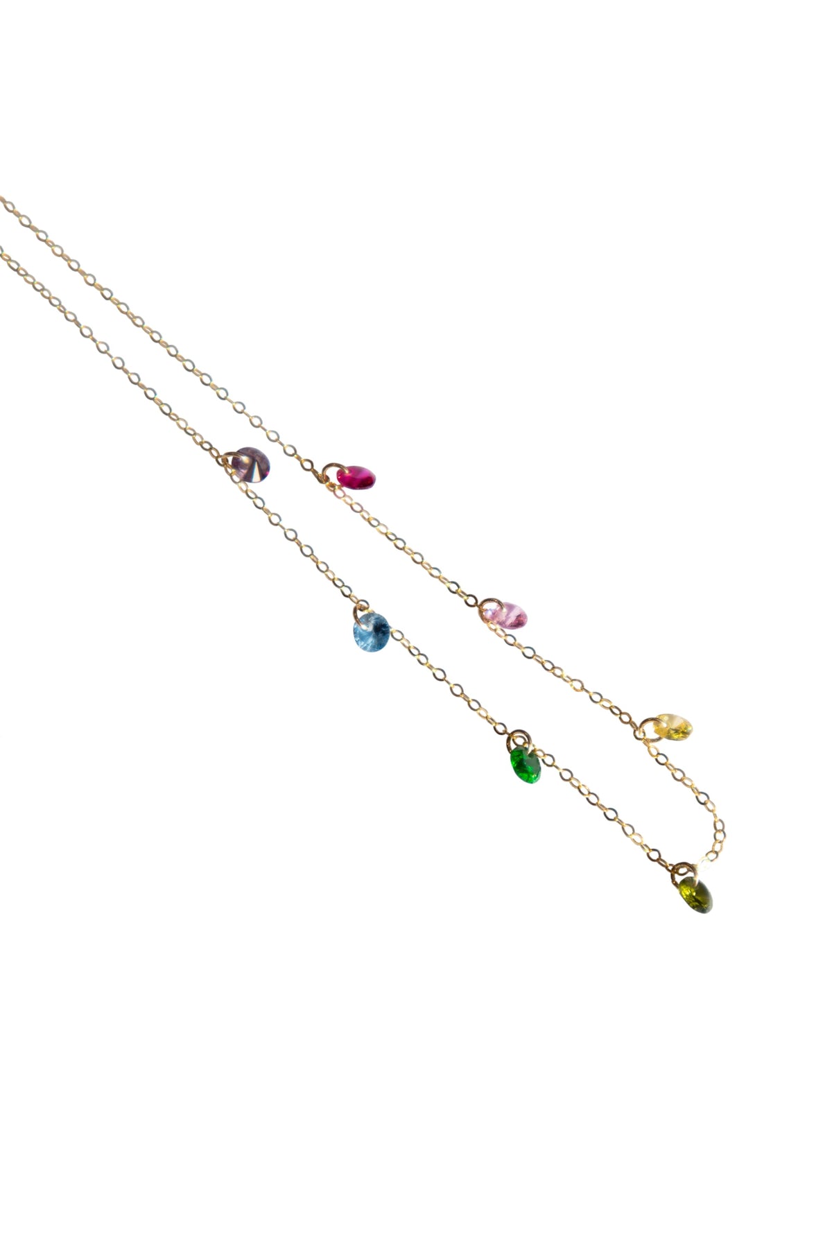 14k gold vermeil with rainbow zircon gemstones. Chain length 14 inches plus 2-inch extension. Weight: 4g.