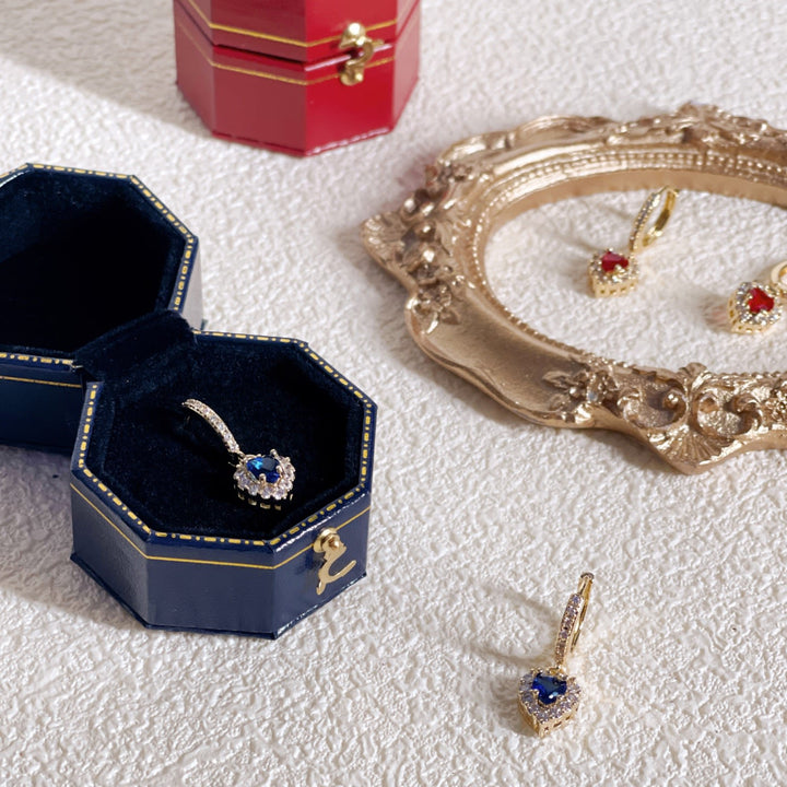 Celestial Heart Gems Earrings - Blue