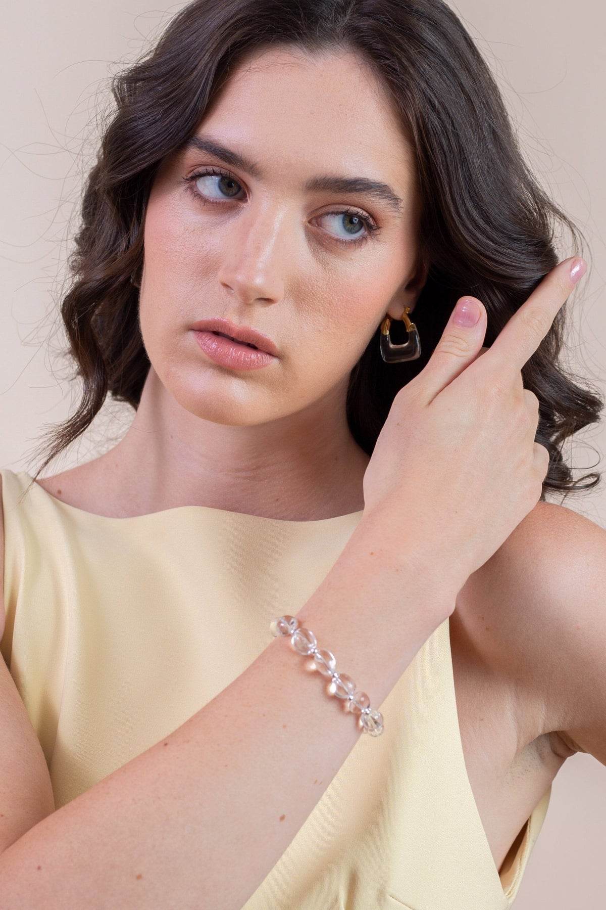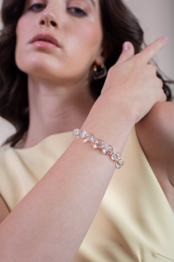 This See Through Pebble Bracelet by Zynnia Collective is playful and modern, featuring transparent beads that create a unique, light-catching effect. A versatile piece designed for layering or wearing solo, it adds a fun twist to any look while maintaining the brand’s minimal and stylish aesthetic.