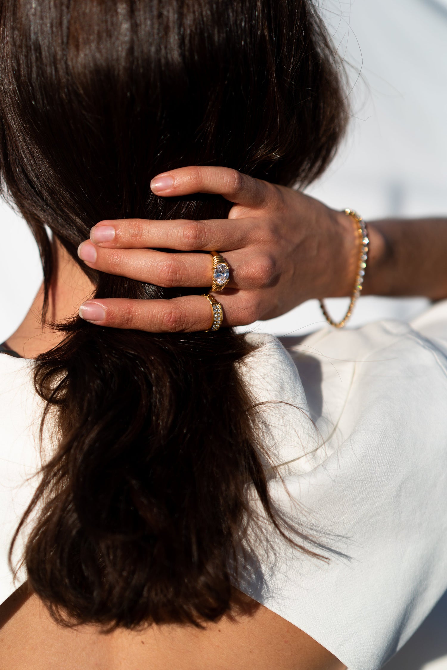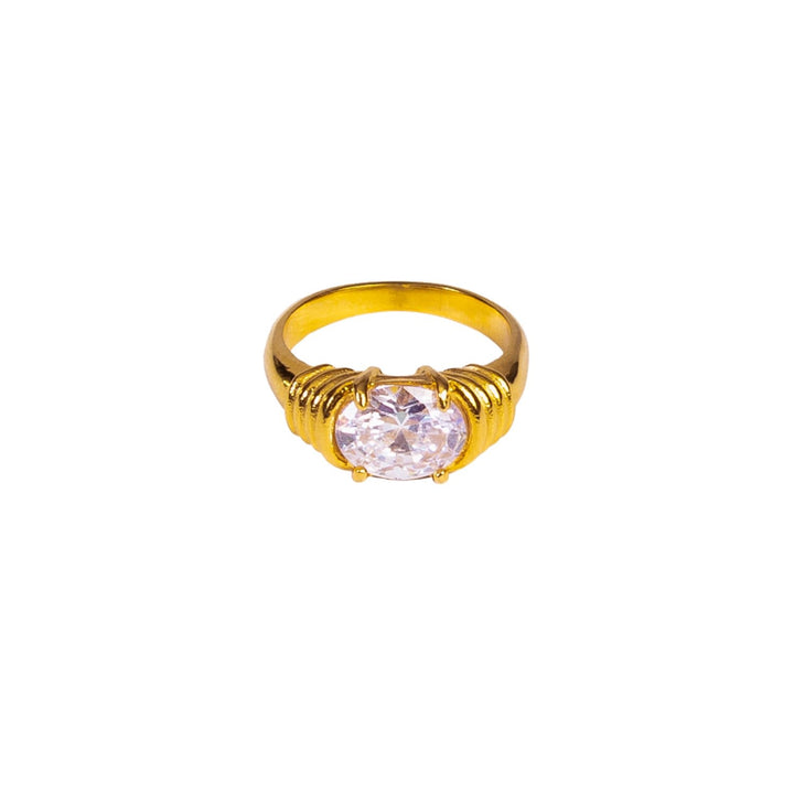 Crafted from 18k gold-plated stainless steel, this ring features a unique stone finish.