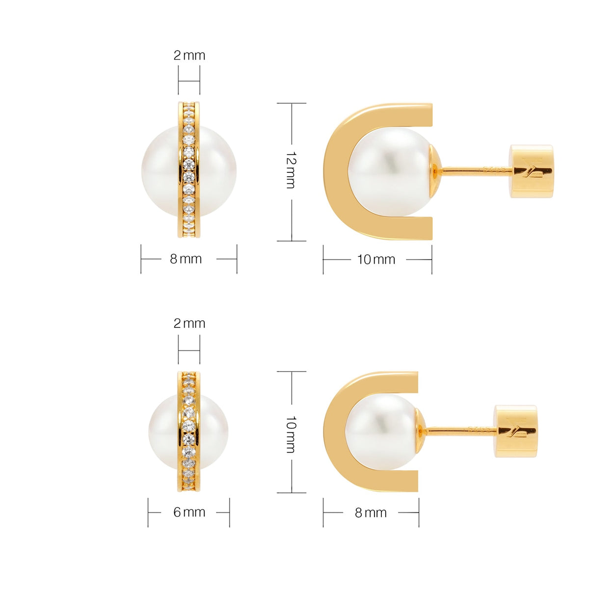 These Pearl And Arc Stud Earrings - Silver by Meulien draw inspiration from a star and its orbit. Made with 18K vermeil, they feature a freshwater pearl ringed by a semicircular band encrusted with pave cubic zirconia stones. The design is classically modern and elegant, and the pearl size is available in 6mm or 8mm.