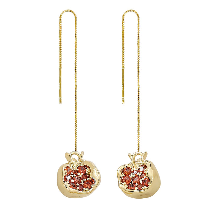 These threader earrings are made from 18k gold-plated brass and 925 silver. They are set with sparkling cubic zirconia in a fruit shape.