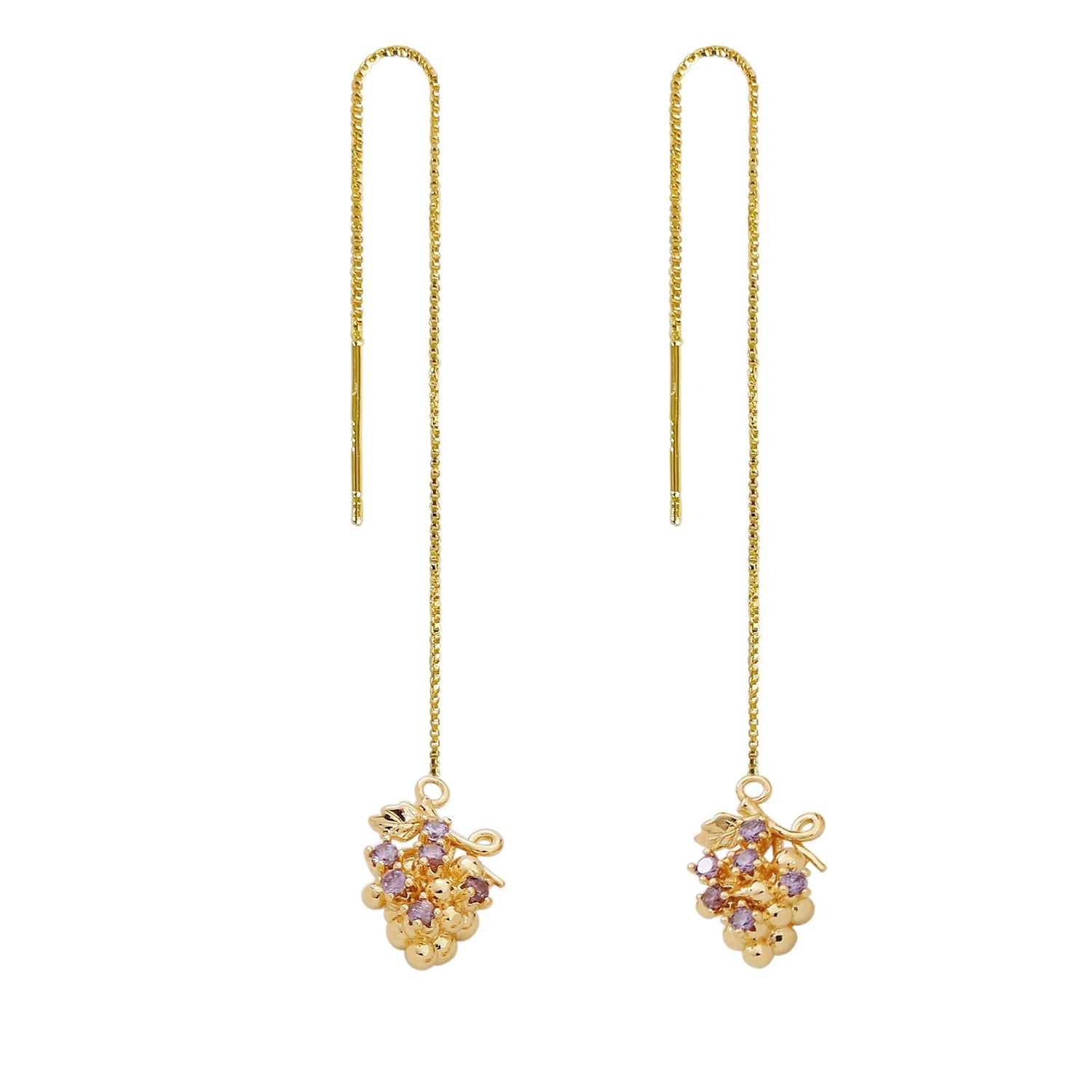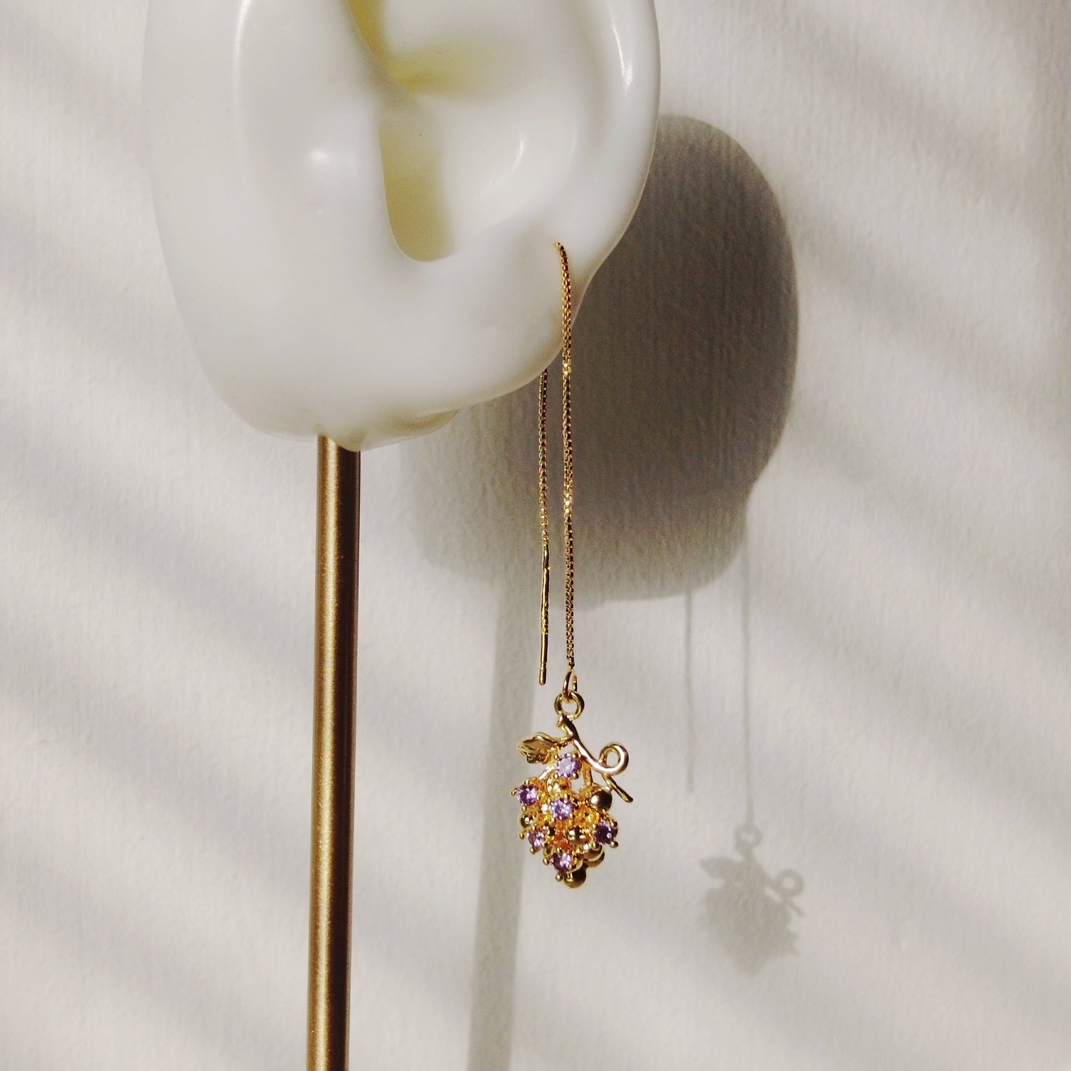 These Fruit Threader Earrings by Ninemoo are a delectable and fun addition to your jewelry collection. Each earring features a sparkling cubic zirconia "fruit" that creates a charming and whimsical arrangement. The delicate threader design gives them an elegant and modern look, while the playful fruit motif adds a touch of everyday joy. These earrings are perfect for those who want to add a lighthearted, sparkly accent to their style.