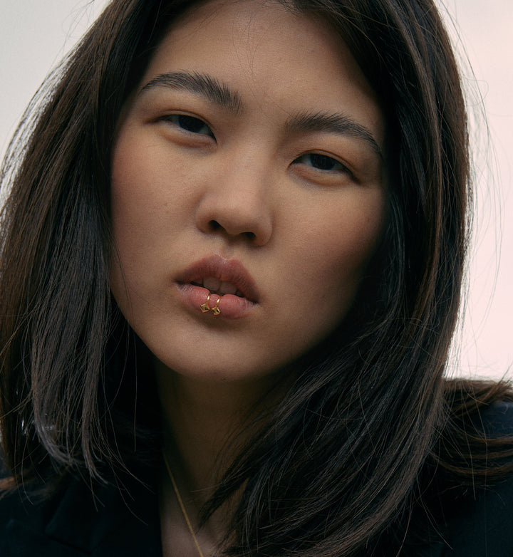 This Fierce Lip and Ear Cuff in Gold by Mishka draws inspiration from the lethal elegance of animal fangs, bringing a bold and untamed energy to your style. Its curving design echoes sharp, sleek fangs, a daring reminder of primal instincts and fearless self-expression. With its elastic and versatile structure, it can be worn on the ear, lips, or nose, offering a striking accessory for those who want to stand out and embrace their wild side.