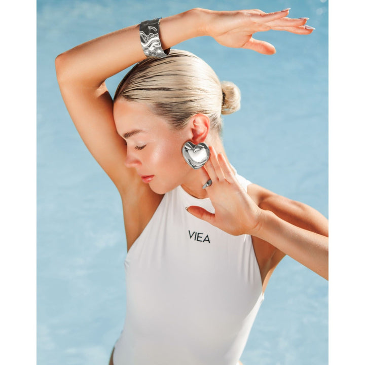 These Adora Statement Heart Shaped Earrings by Viea are bold, polished pieces designed for those who love to make an entrance. Their sleek heart silhouette balances sophistication and playfulness, perfect for both everyday wear and special occasions. A modern yet timeless statement of love and individuality.