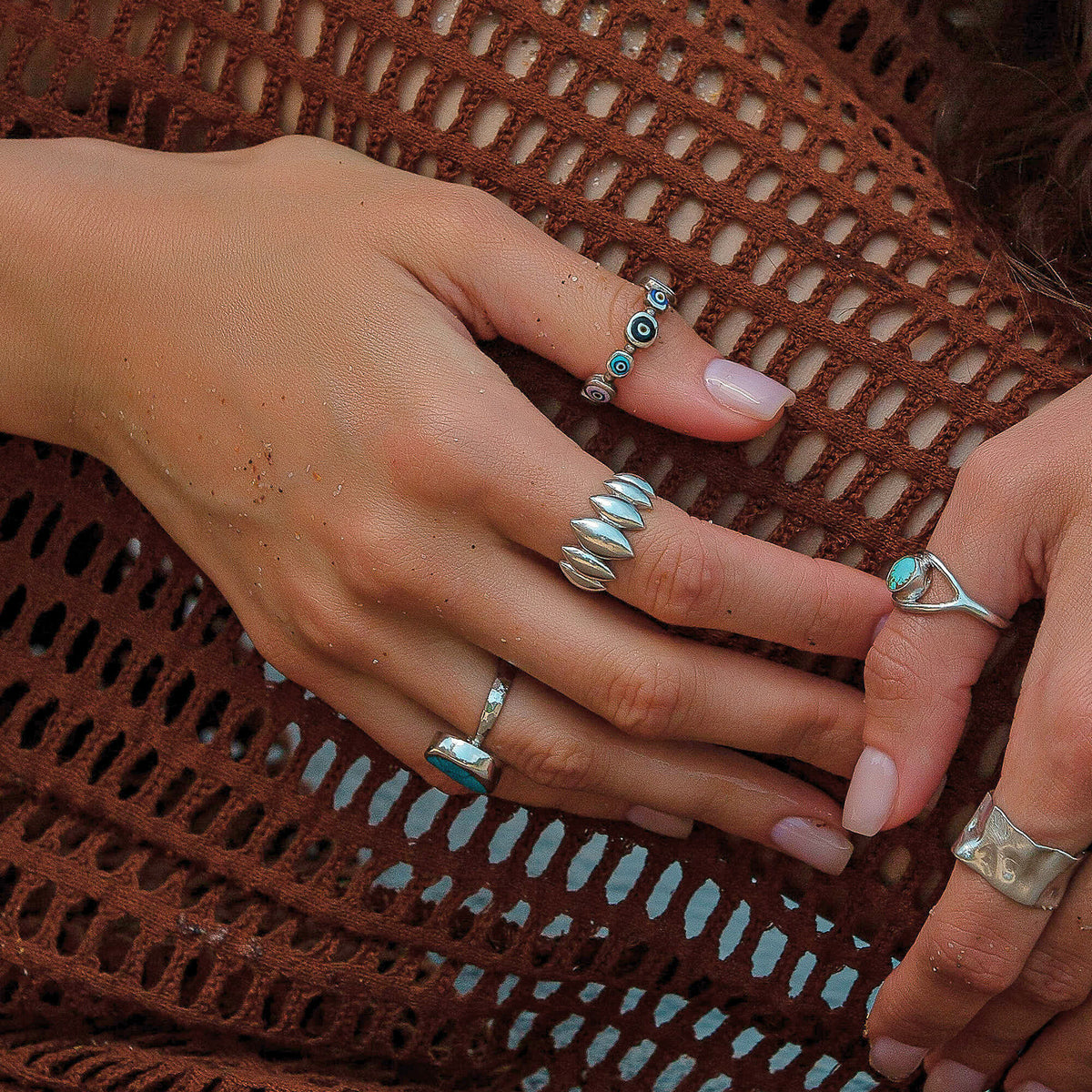 This Multiple Marquise Silver Ring by Mejoma is a stunning and elegant piece that is designed to sparkle with every movement. The ring features multiple marquise-shaped silver stones that are meticulously set to catch and reflect the light. This luxurious piece is perfect for any occasion, from a formal event to a casual day out, and is sure to add a touch of glamour to your outfit.