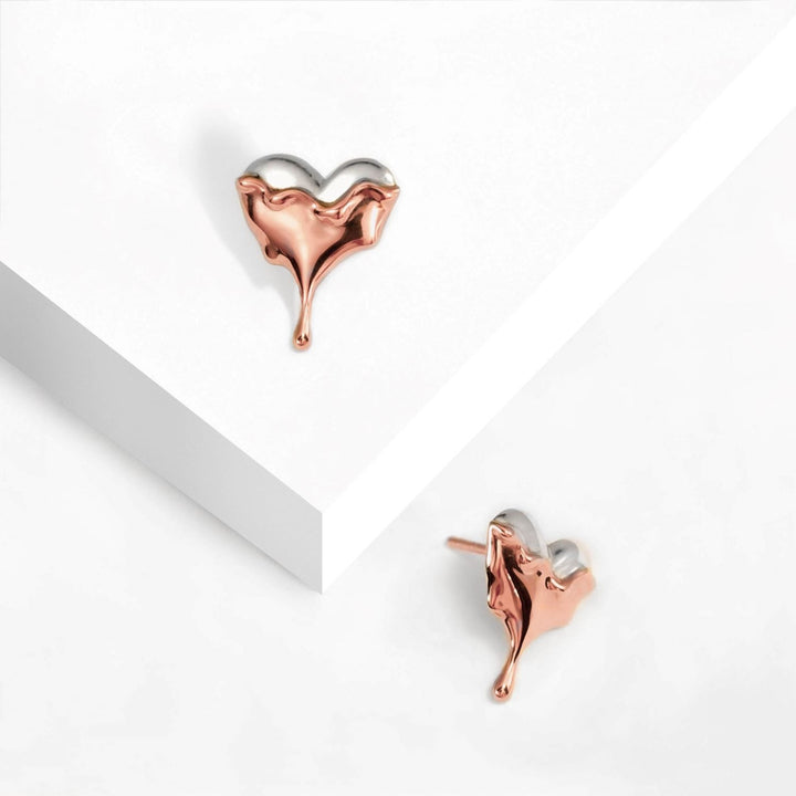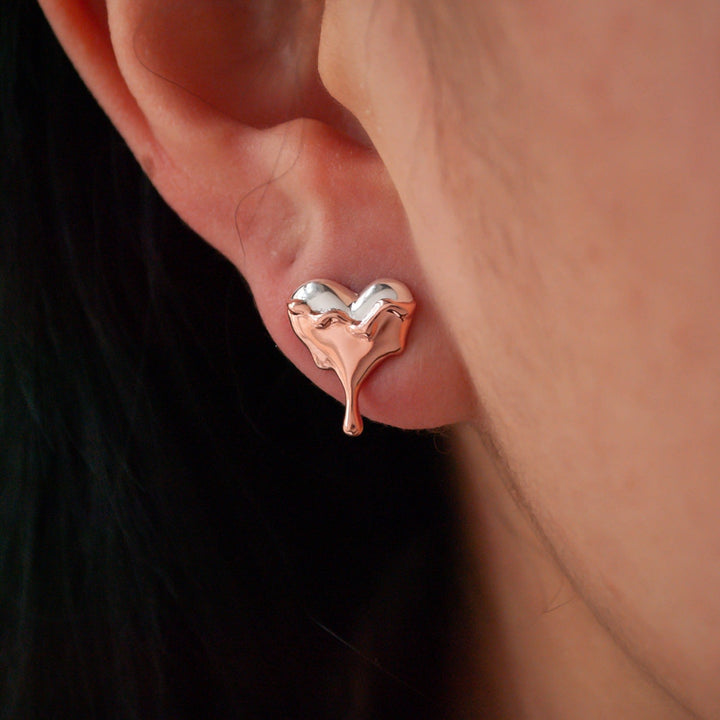 Dripping Heart Rose Gold Vermeil Stud Earrings