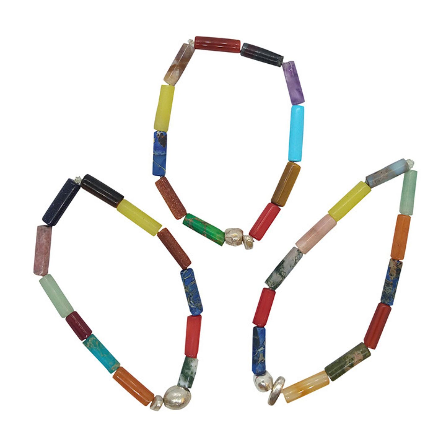 This bracelet is crafted with natural stone beads and a single piece of 925 sterling silver.