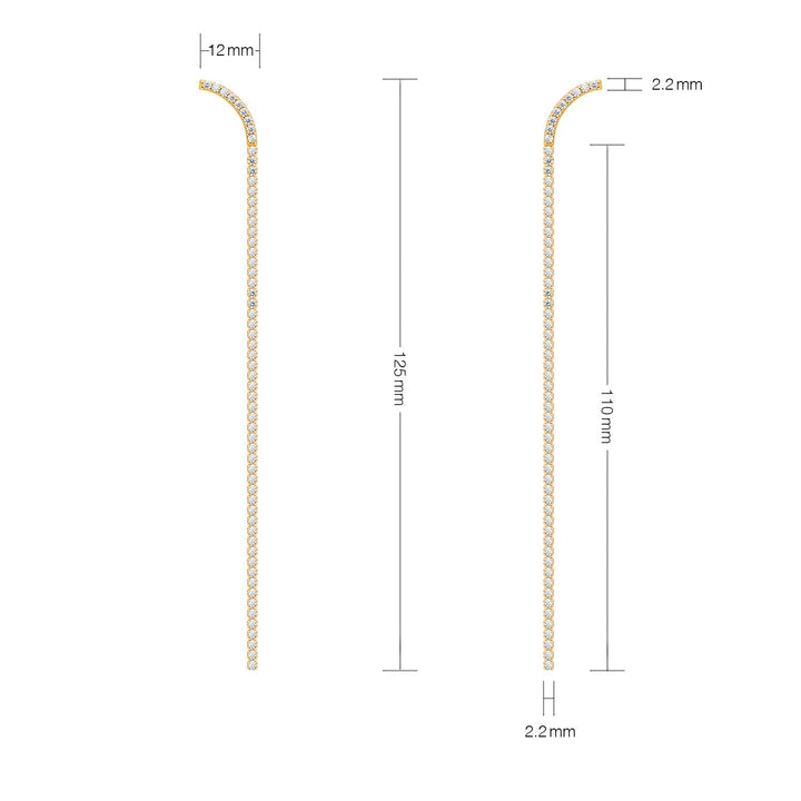 These long dangle earrings are crafted from 18K vermeil and set with clear cubic zirconia (CZ) stones.
