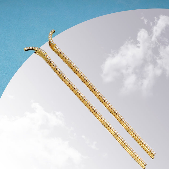 Long Tennis Chain Dangle Earrings - Gold