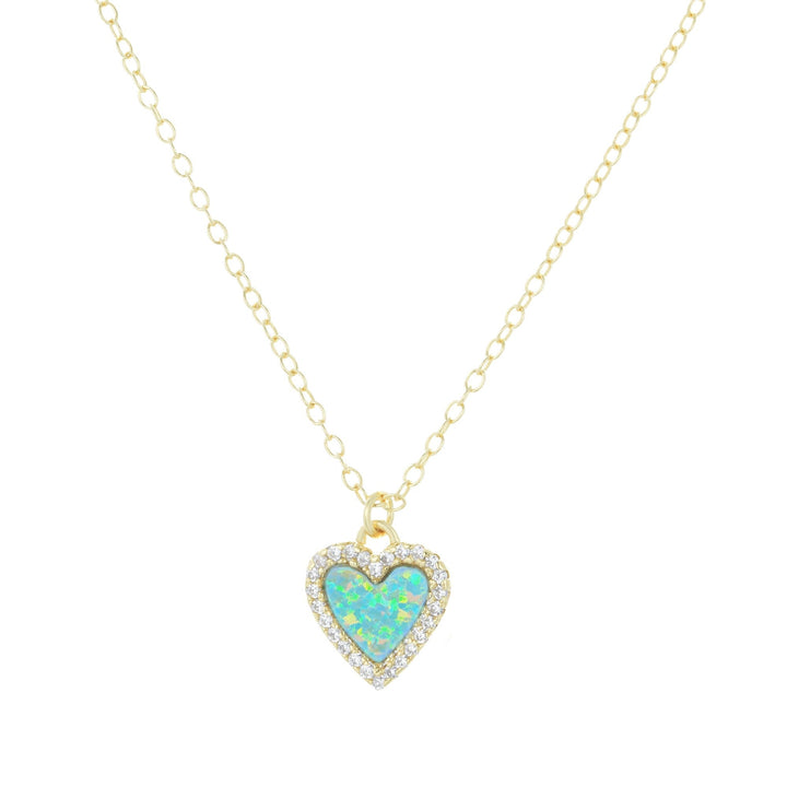 This Mini Opal Heart Necklace With Crystals - Light Green by Kamaria is a charming and delicate accessory. This necklace features a lab-created round opal heart surrounded by sparkling crystals. It is set in 925 sterling silver and plated in gold. The chain is adjustable from choker length to 18 inches with a slider ball, making it perfect for wearing alone or layering. This is a beautiful and versatile accessory that adds a pop of color to any outfit.