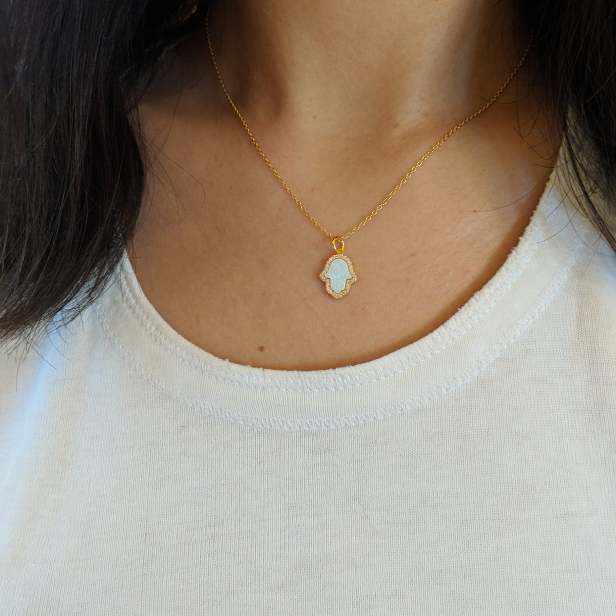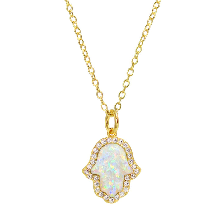 Opal Hamsa Hand Necklace In White Opal