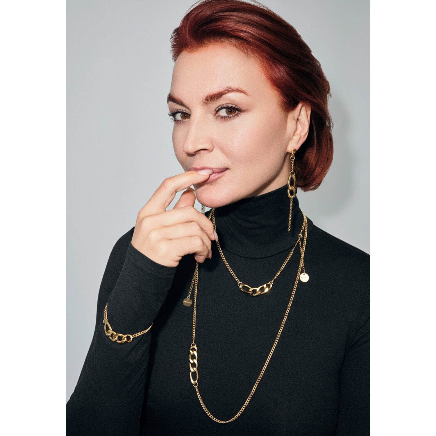 This choker features a fine chain with a statement link accent and is available in a radiant gold finish.