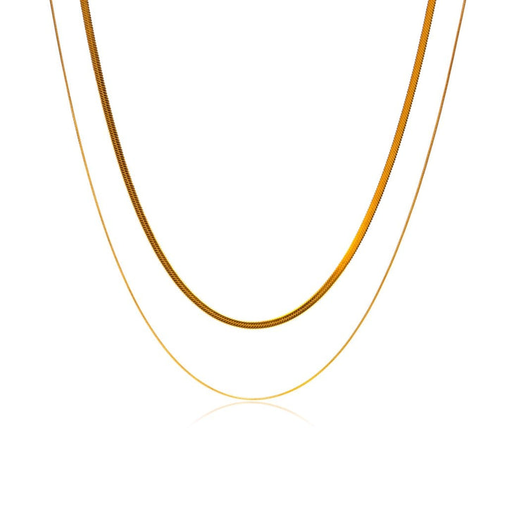 This two-layer necklace set is crafted from 18k gold-plated stainless steel.