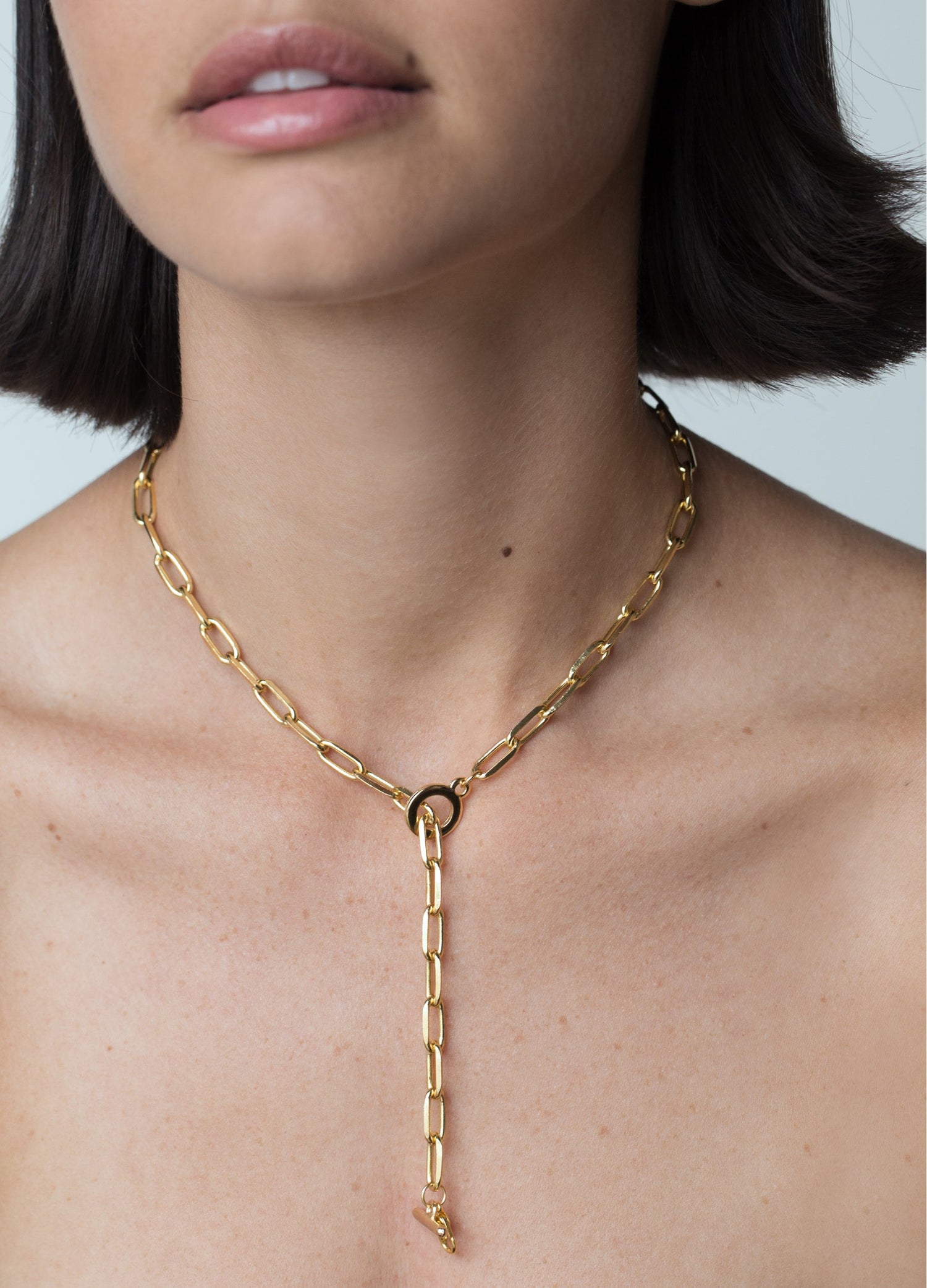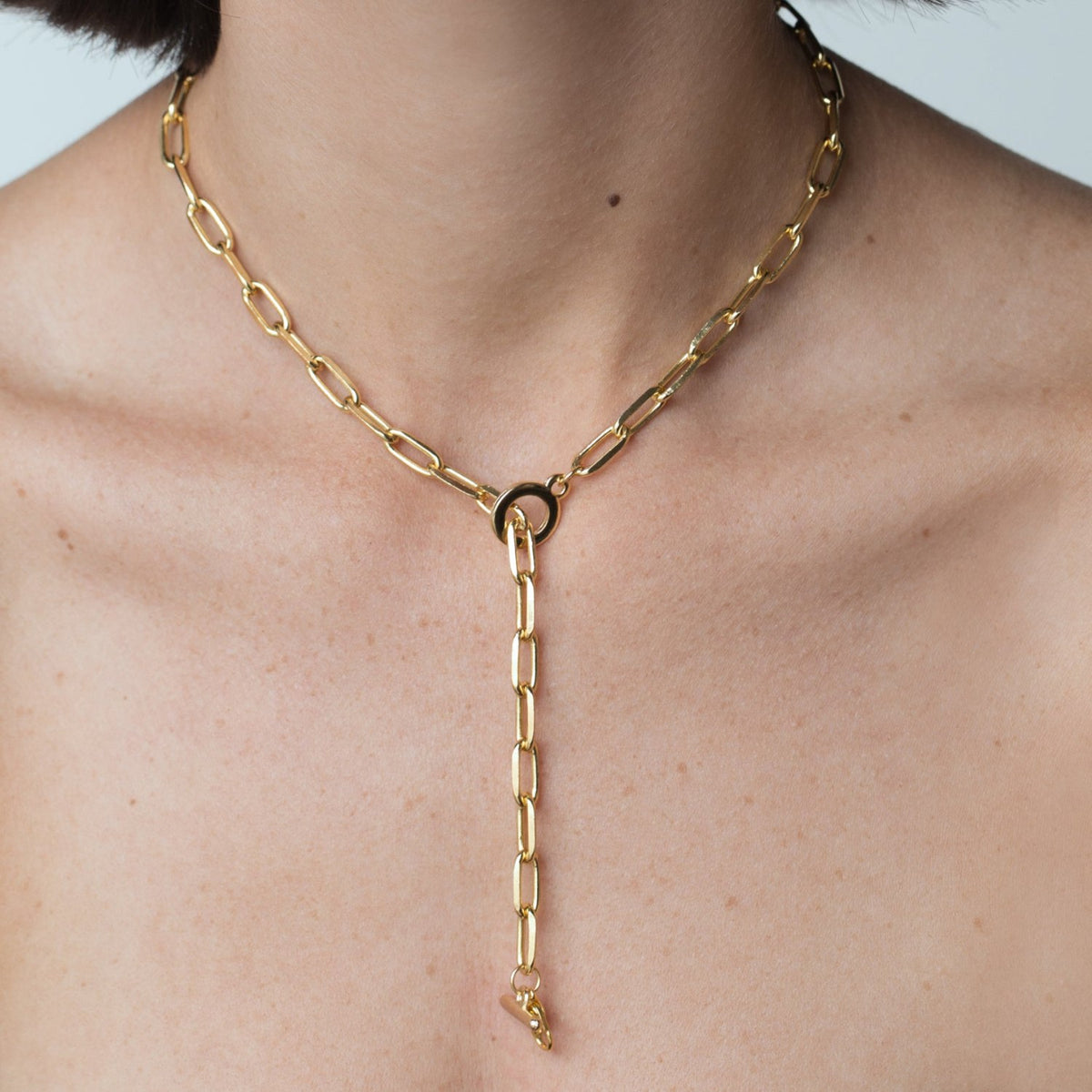 This Modern Chain A Necklace by Outofoffice is a versatile layering essential. Its bold links offer both lariat and traditional styling options, bringing modern sophistication to any look. Designed for flexibility, it’s the ultimate chain to anchor your jewelry collection.