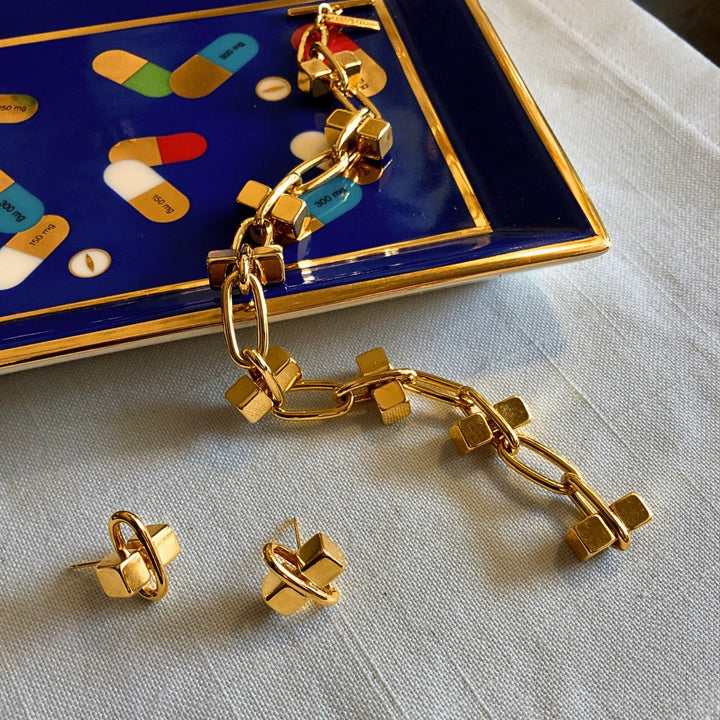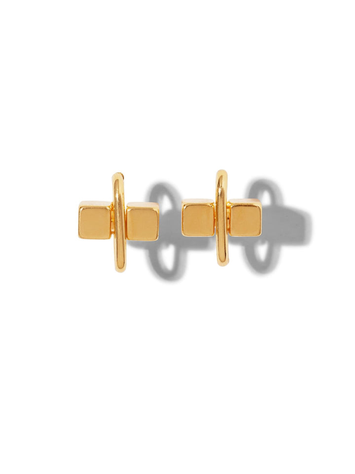These Gold Blockbuster Stud Post Earrings by Jaredjamin are a small but mighty statement piece. Their stylish, modern design gives them an edgy feel, making them a perfect complement to any of our link necklaces or other items from the Blockbuster collection. They can be effortlessly mixed and matched to create a personalized look that is both bold and chic. These studs embody a sleek, confident aesthetic, perfect for those who appreciate a clean and striking design.