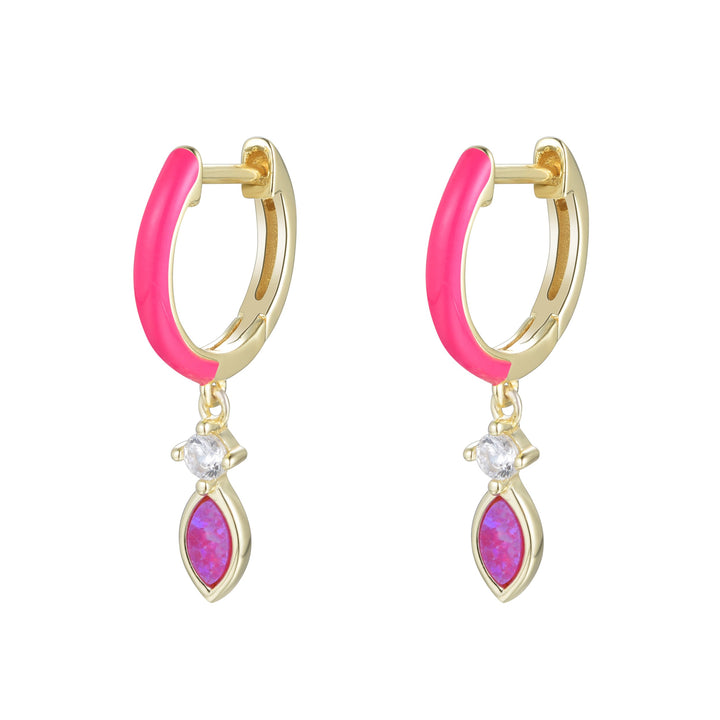 These huggie earrings are crafted from gold-plated sterling silver. They feature red enamel and lab-created opals. The inner huggie dimension is 10mm in diameter.