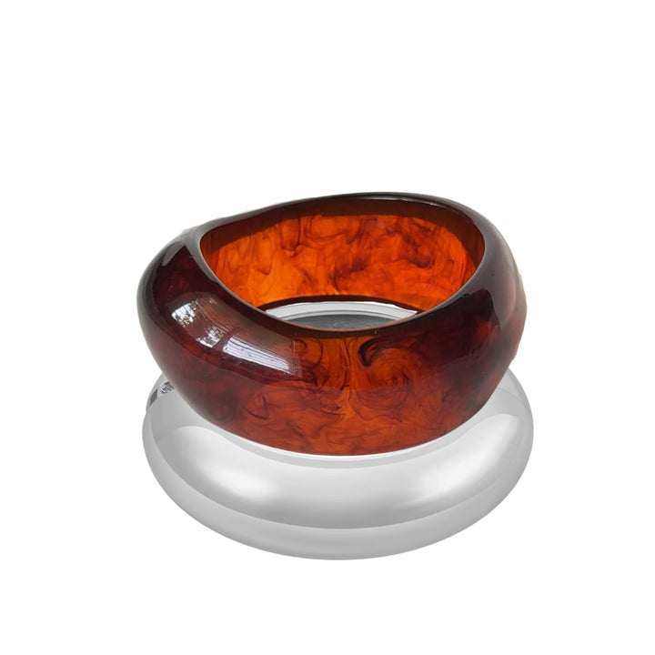 This set includes two bangles crafted from silver and resin materials. They are designed for durability and a stylish look.