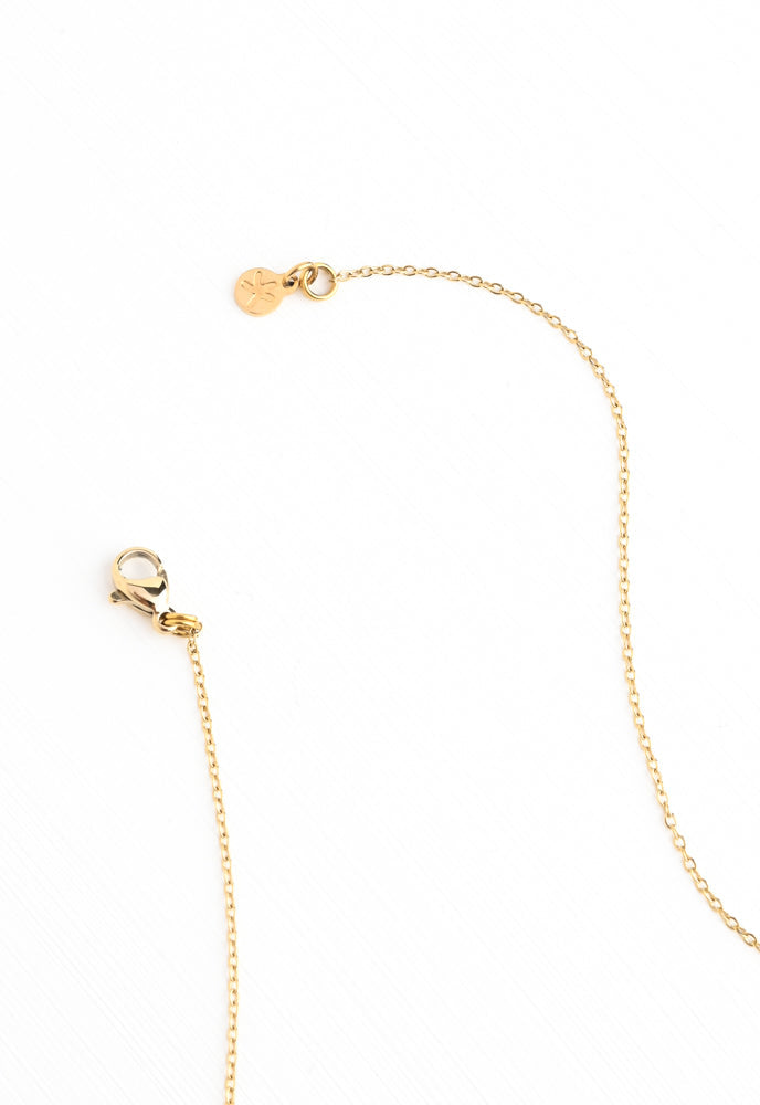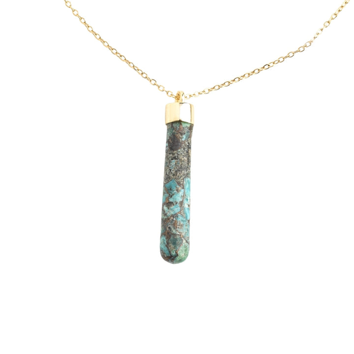 Crafted with turquoise gemstone dipped in gold, suspended from a 14k gold-plated stainless steel chain. Adjustable length 32". Hypoallergenic, lead- and cadmium-free.