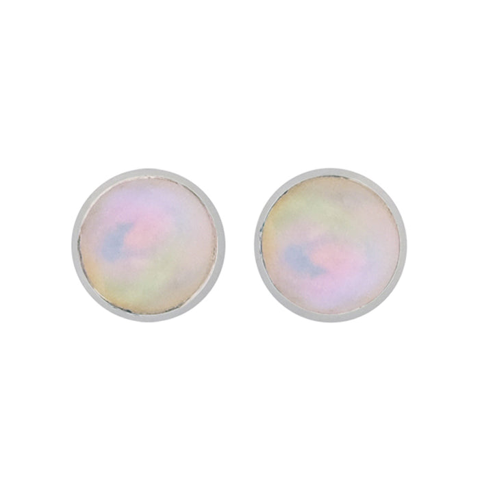 Sterling silver studs set with natural opal cabochons (0.6cm). Hypoallergenic and nickel-free. Handmade. Compatible with Maya jackets (sold separately).