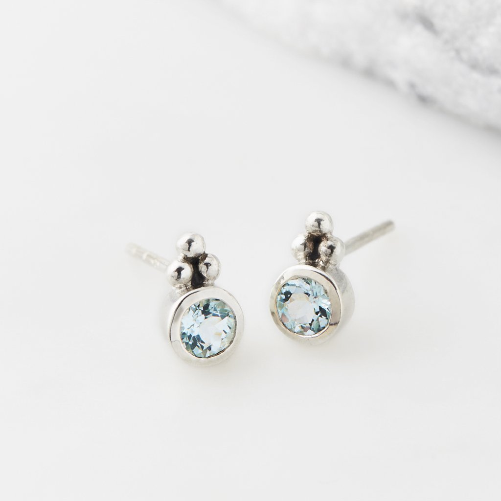 Holi Jewel Silver Stud Earrings - Blue Topaz