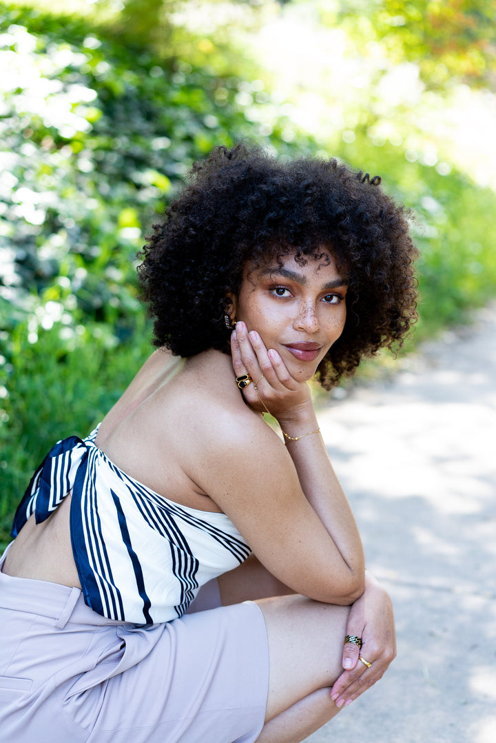 This ring is crafted from 18k gold-plated stainless steel.