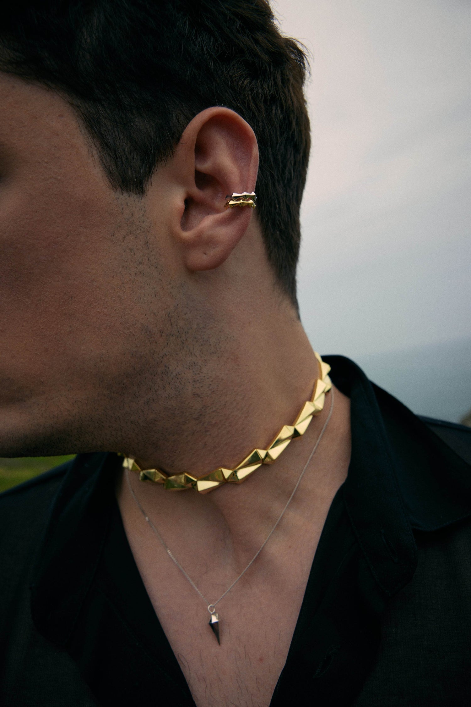 Made in 925 sterling silver with 22k gold plating. Nickel-free and hypoallergenic. Unisex elastic cuff design.
