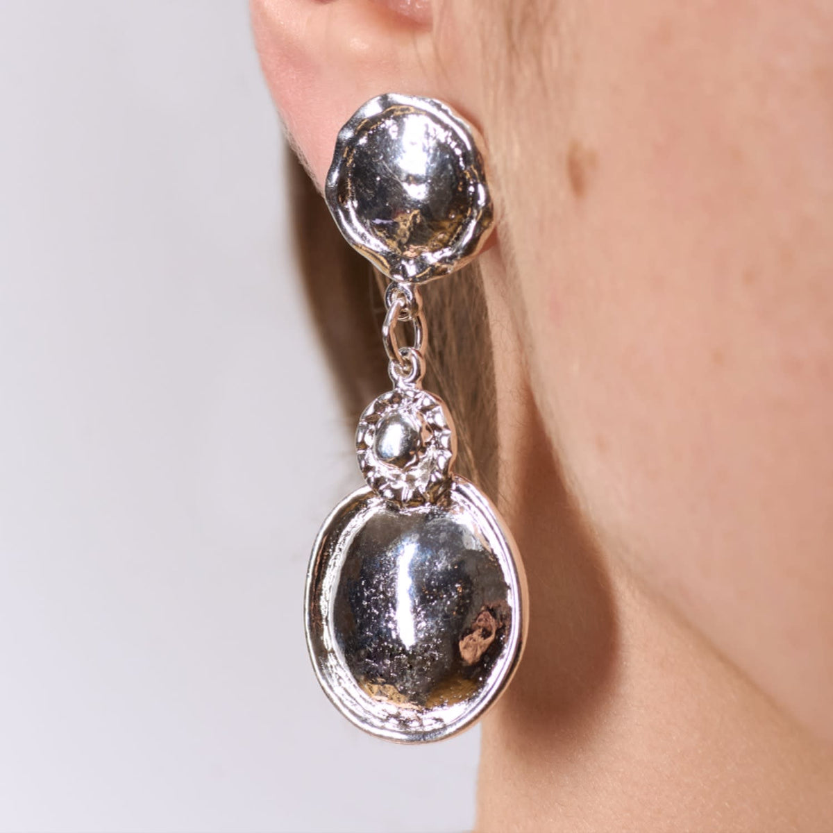 These Sadie Earrings by Caramel Vintage Jewellery are a bold and minimal statement. The layered silver discs, with their subtle texture and high shine, create an effortlessly cool and modern-vintage look inspired by the 80s. As genuine vintage pieces, they are a unique and stylish addition to any collection.