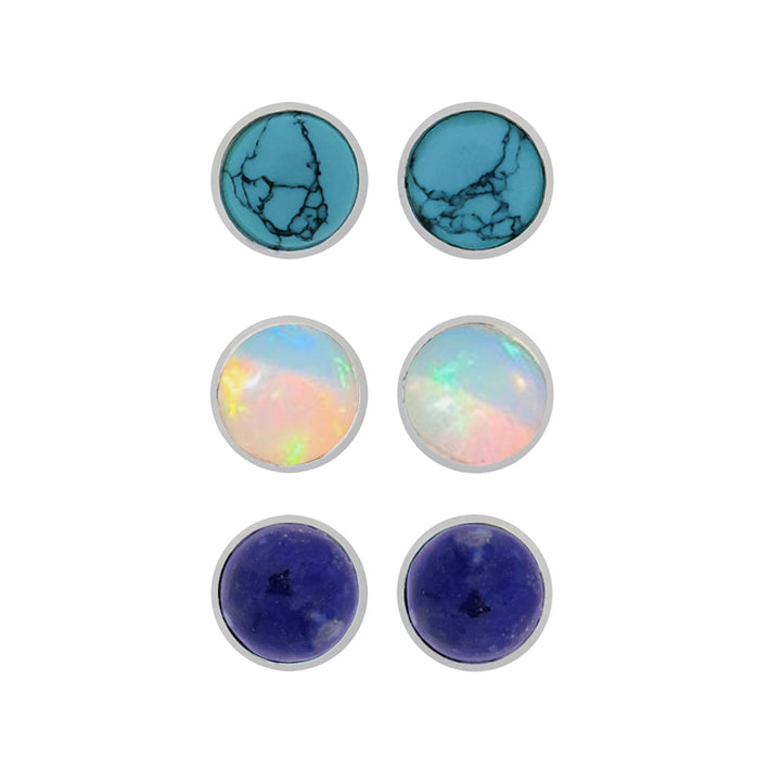 Maya Interchangeable Silver Stud Earrings - Lapis Lazuli