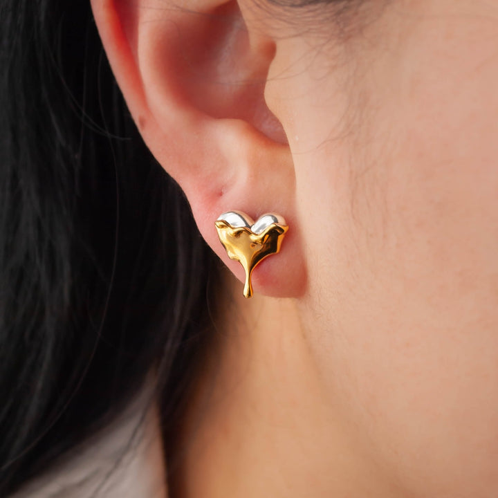 Dripping Heart Gold Vermeil Stud Earrings