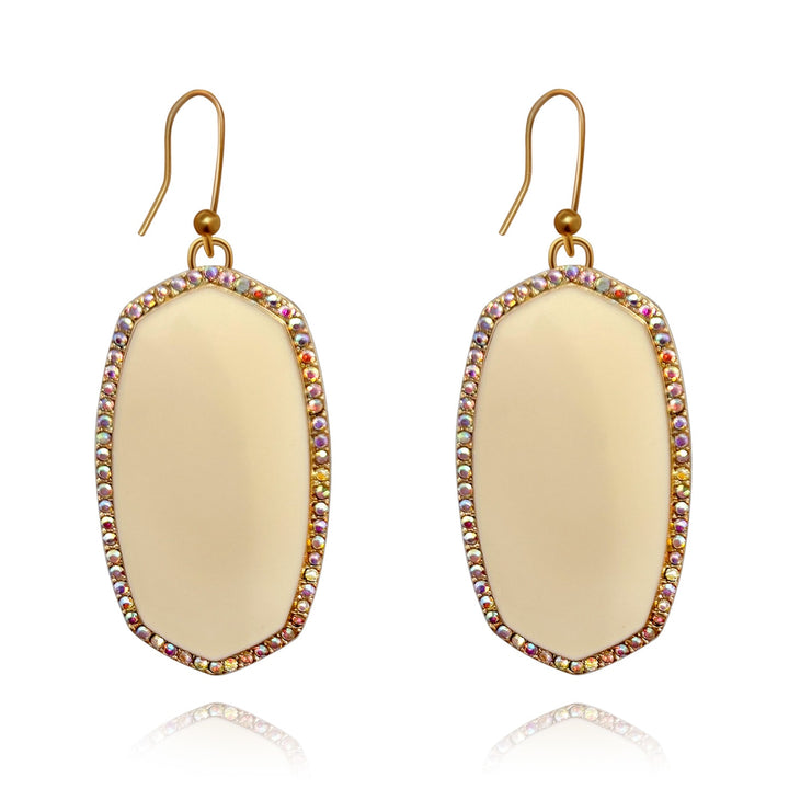 Off White Hand-Enameled Drop Earrings With Crystal Rim On French Wire