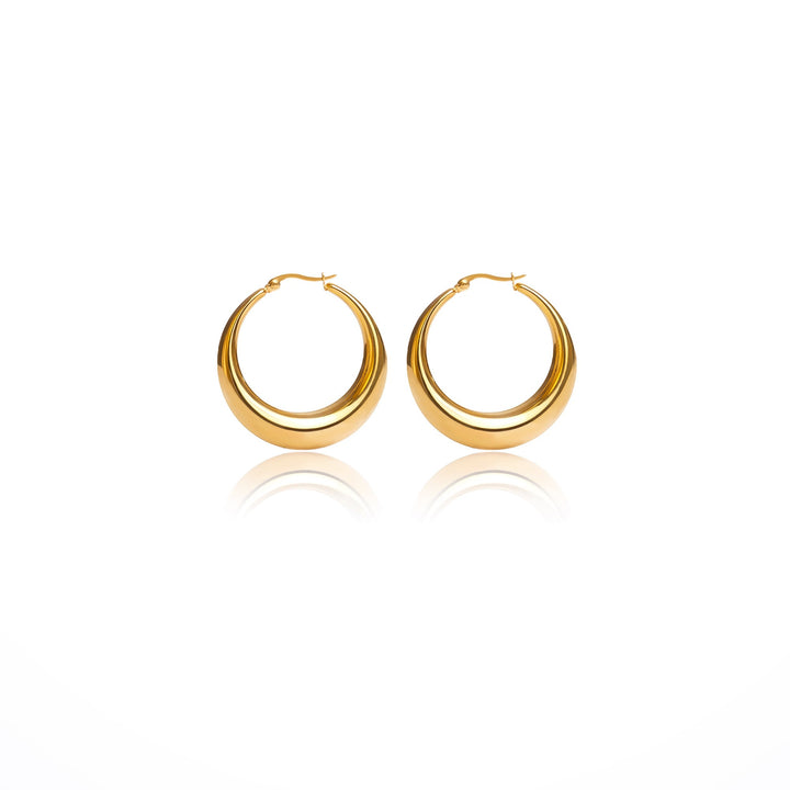 These hoops are crafted from 18k gold-plated stainless steel and come in a jewelry pouch.