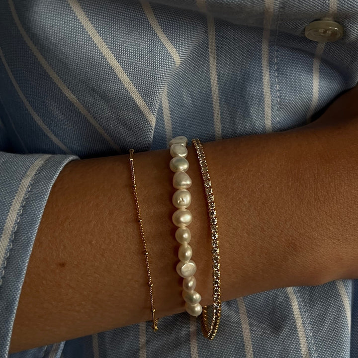 The Dainty Beaded Bracelet by Nazzar is a refined staple. With its delicate row of polished beads, it layers effortlessly with other pieces while standing strong as a minimal statement. Elegant, versatile, and enduring.