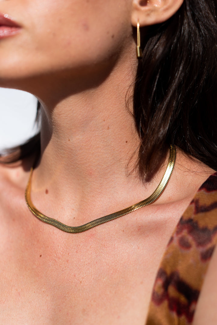 This necklace is 18K gold-plated on stainless steel.
