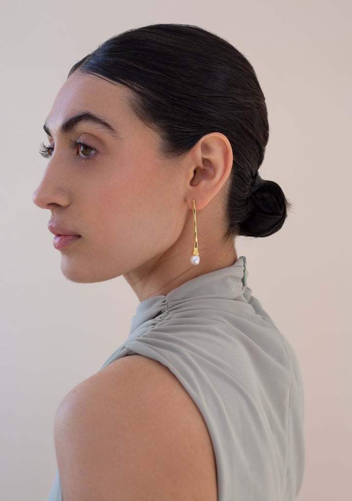 These Long Bud Earrings by Zynnia Collective draw inspiration from the gentle elegance of budding flowers. Their elongated form and subtle gold accents bring a sense of movement and natural grace. A poetic piece for those who love feminine details, they lend whimsical sophistication to everyday outfits or evening looks.