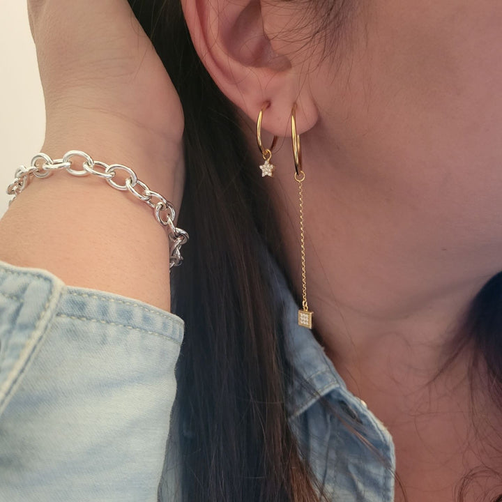 These hoop earrings are made from 14k gold plated on 925 sterling silver. They are 15mm in size and are coated with an extra layer of anti-tarnishing agent.