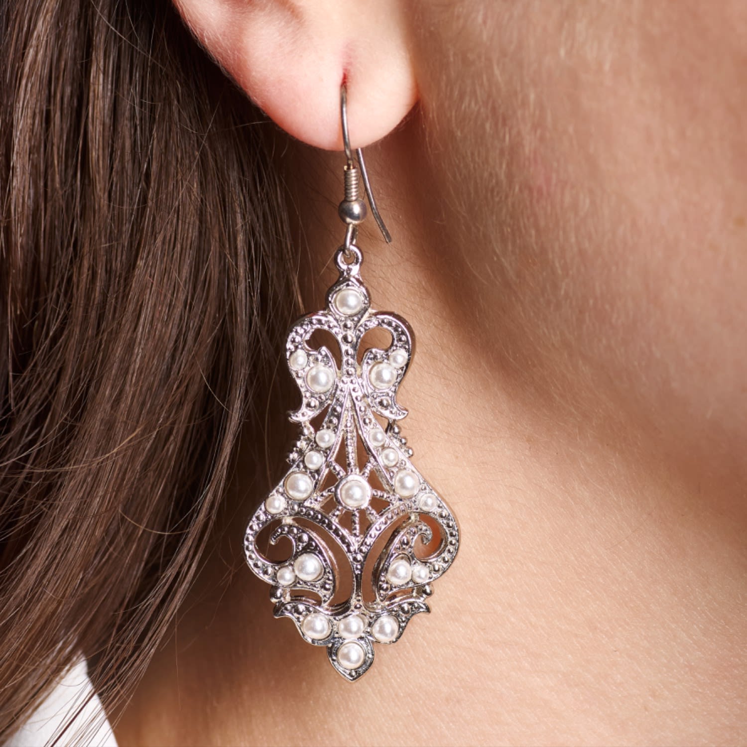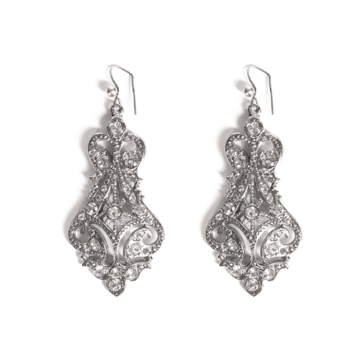 These Silver Lilibeth Earring by Caramel Vintage Jewellery are an intricate and impactful accessory. The lightweight earrings feature a gothic-inspired silver filigree design with plenty of sparkle. They are a perfect statement piece for evening wear.