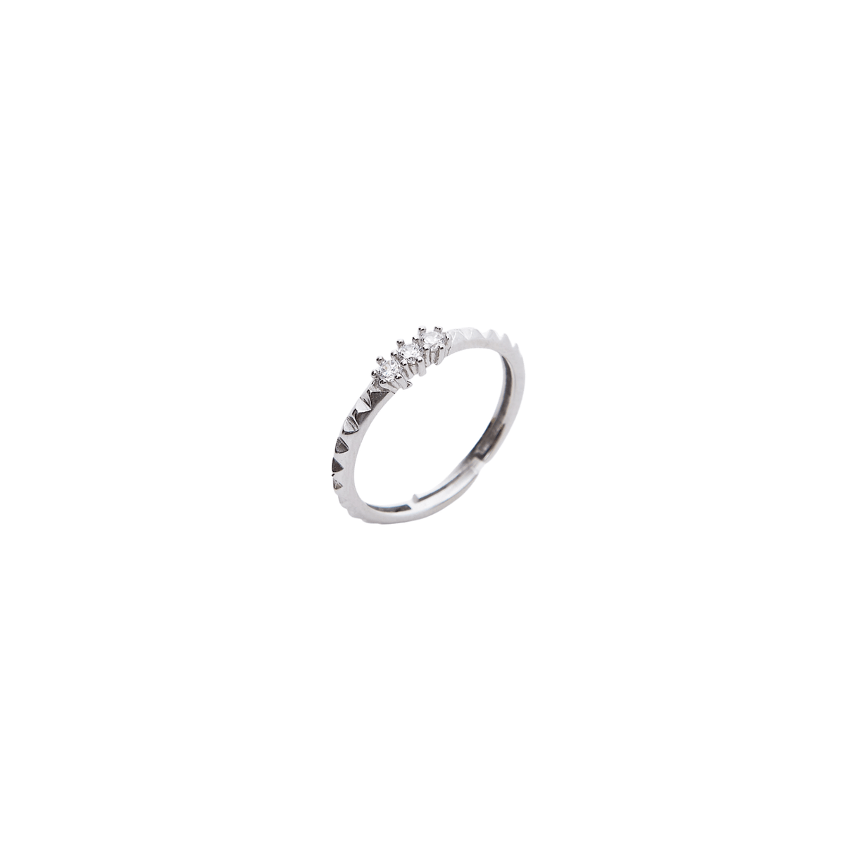 This Sterling Silver Three Round Gem Stacking Ring by Spero London is an elegant yet minimalistic ring set perfect for a day-to-night look. Cast in 925 recycled sterling silver, it highlights a trio of rings embellished with sparkling baguette and round-cut crystals on a textured body. This highly adjustable set fits flawlessly on your fingers and can be worn alone or stacked for a trendy look.