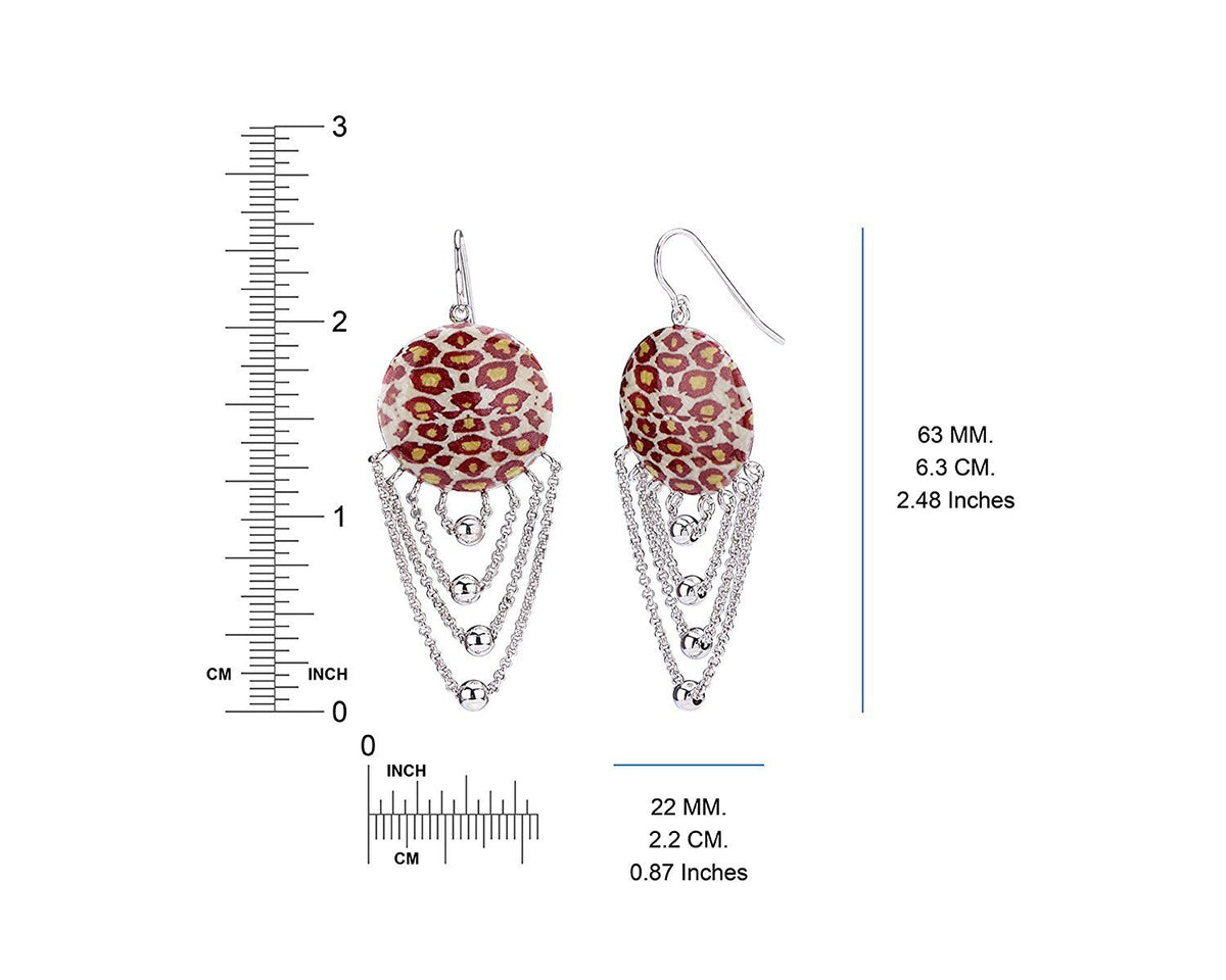 These drop and dangle earrings are made of sterling silver with a leopard print. The drop length is 2.5 inches.