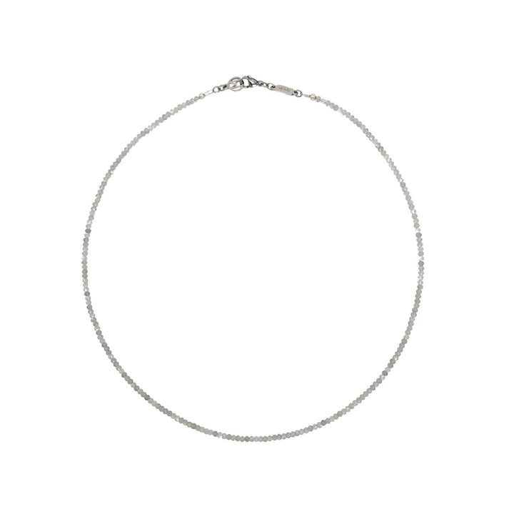 This necklace features labradorite gemstones. It has a signature clasp and is crafted to highlight the stone's natural flashes of color.