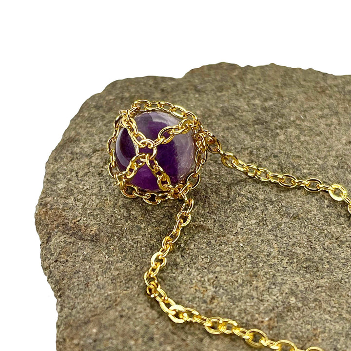 Caged Golden Brass Caged Amethyst Necklace