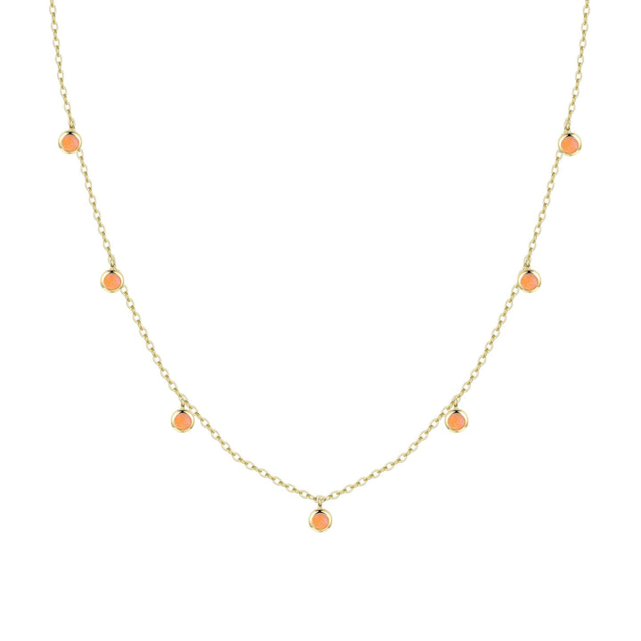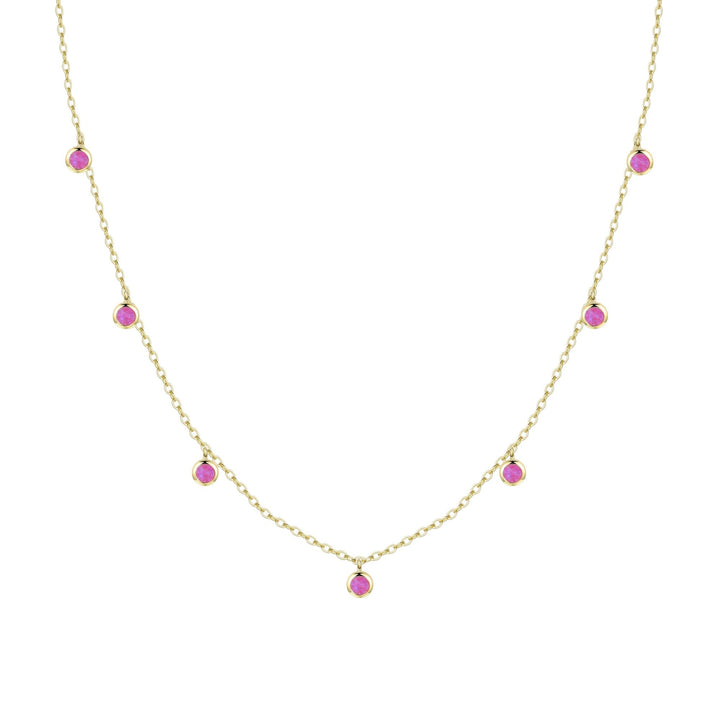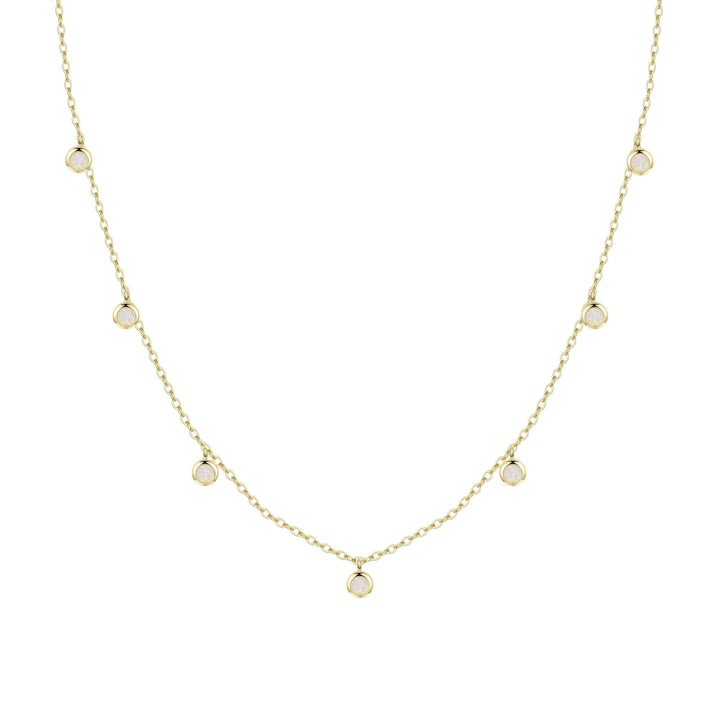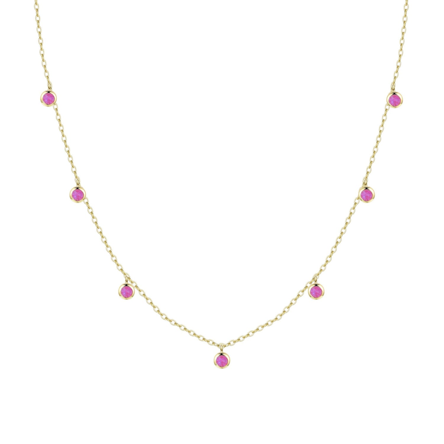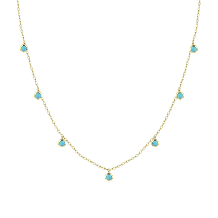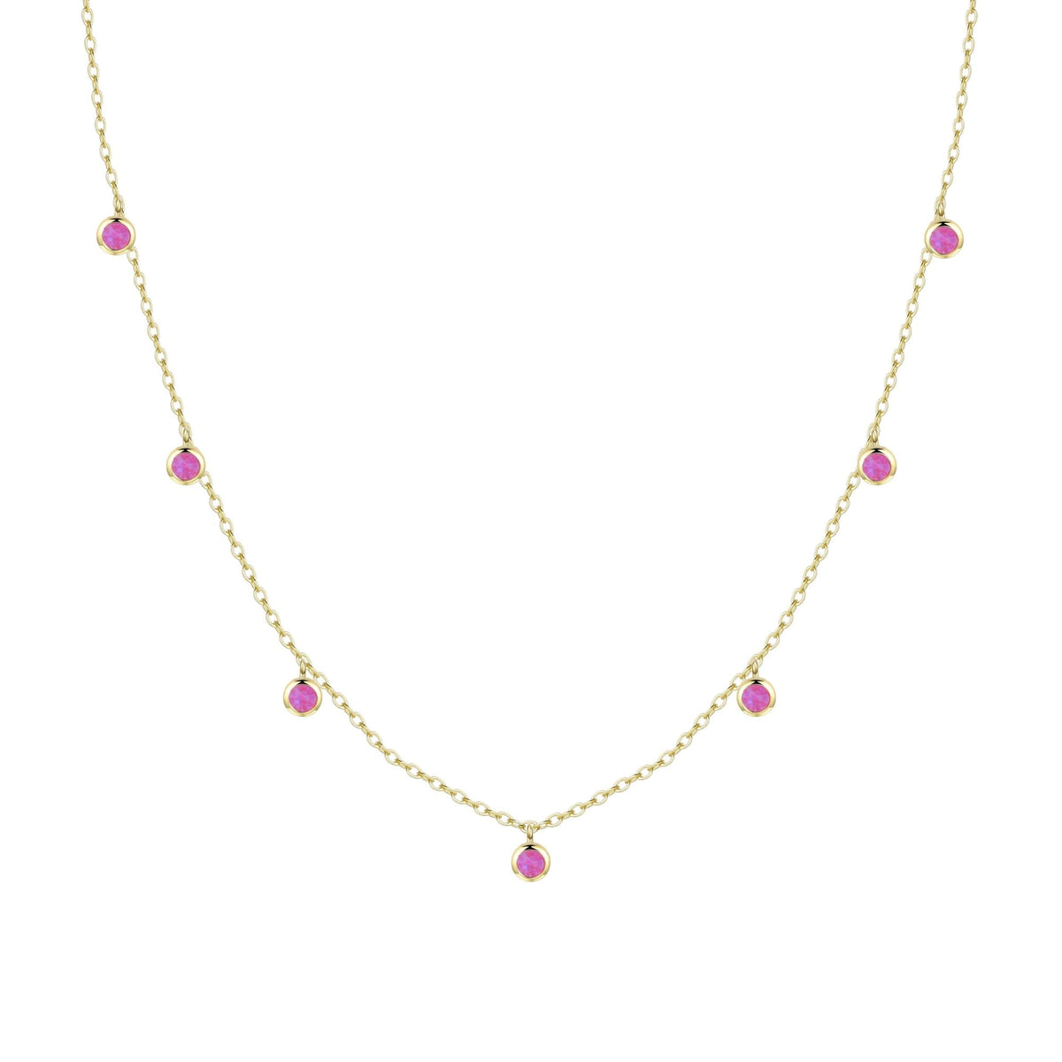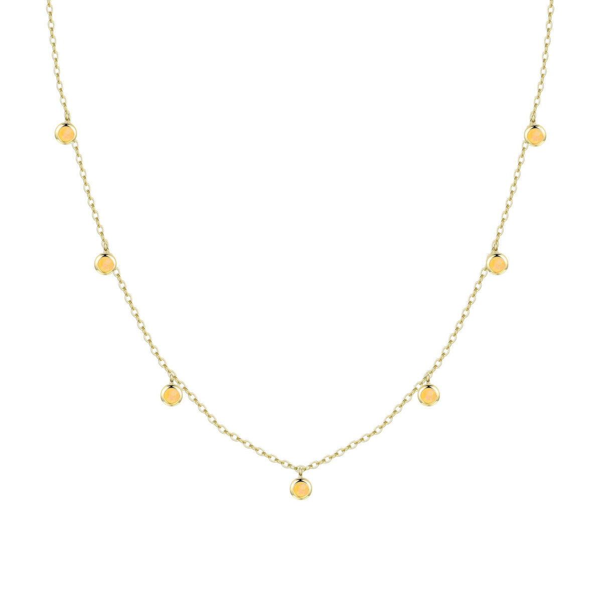 This layering necklace is made of sterling silver with 14k gold plating. It features high-quality lab-created opals and has an adjustable chain up to 18 inches.