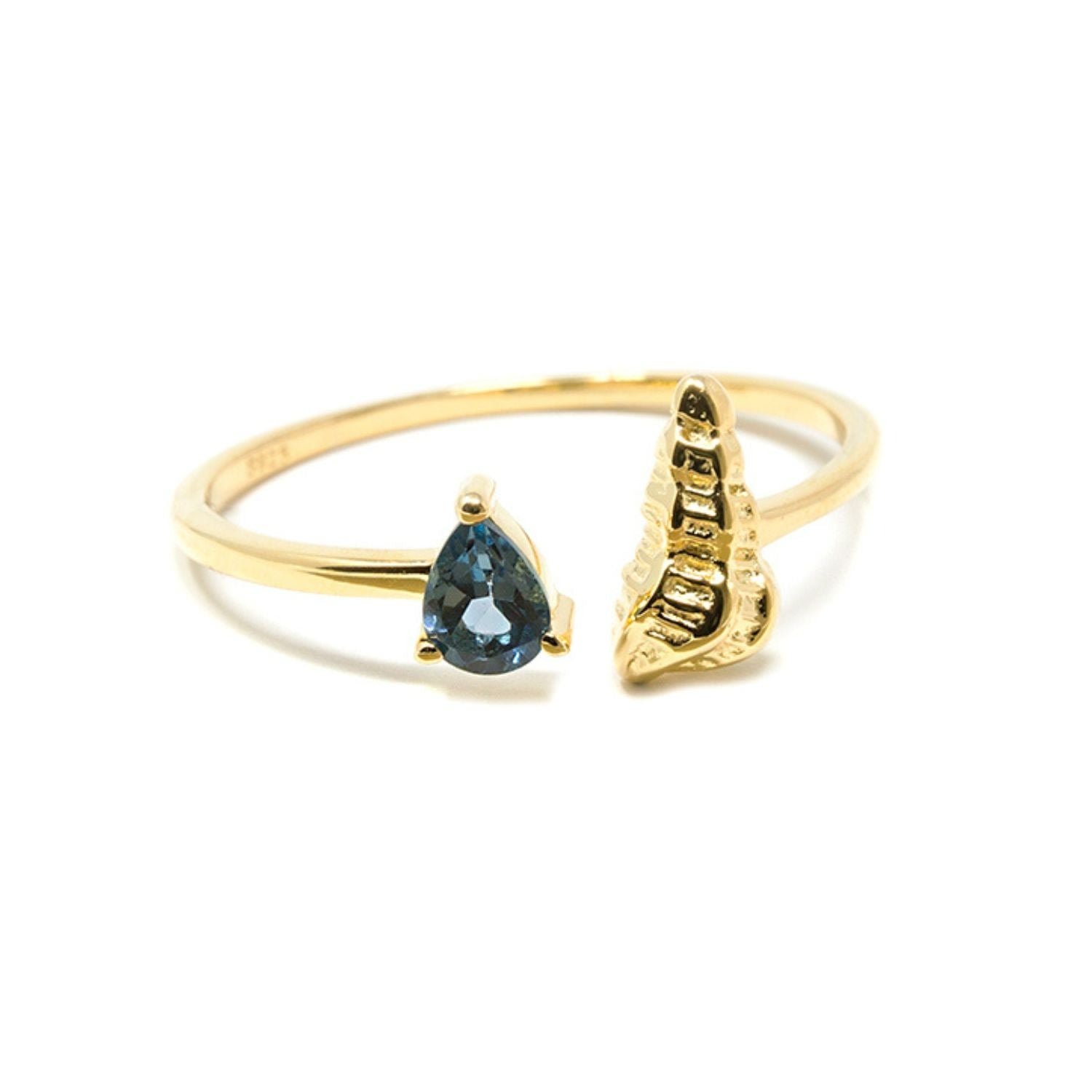 This Shell Sedef Ring in Blue Topaz by Nasi Silver evokes both protection and serenity, drawing inspiration from the meaning of "sedef," which signifies shell and mother of pearl. The shell motif embodies the need for shelter and self-care, reminding the wearer to pause and nurture their inner world. Blue Topaz, known as the stone of loyalty and love, infuses this piece with creativity, confidence, and emotional depth. Elegant yet symbolic, this ring serves as both adornment and a talisman of protection.