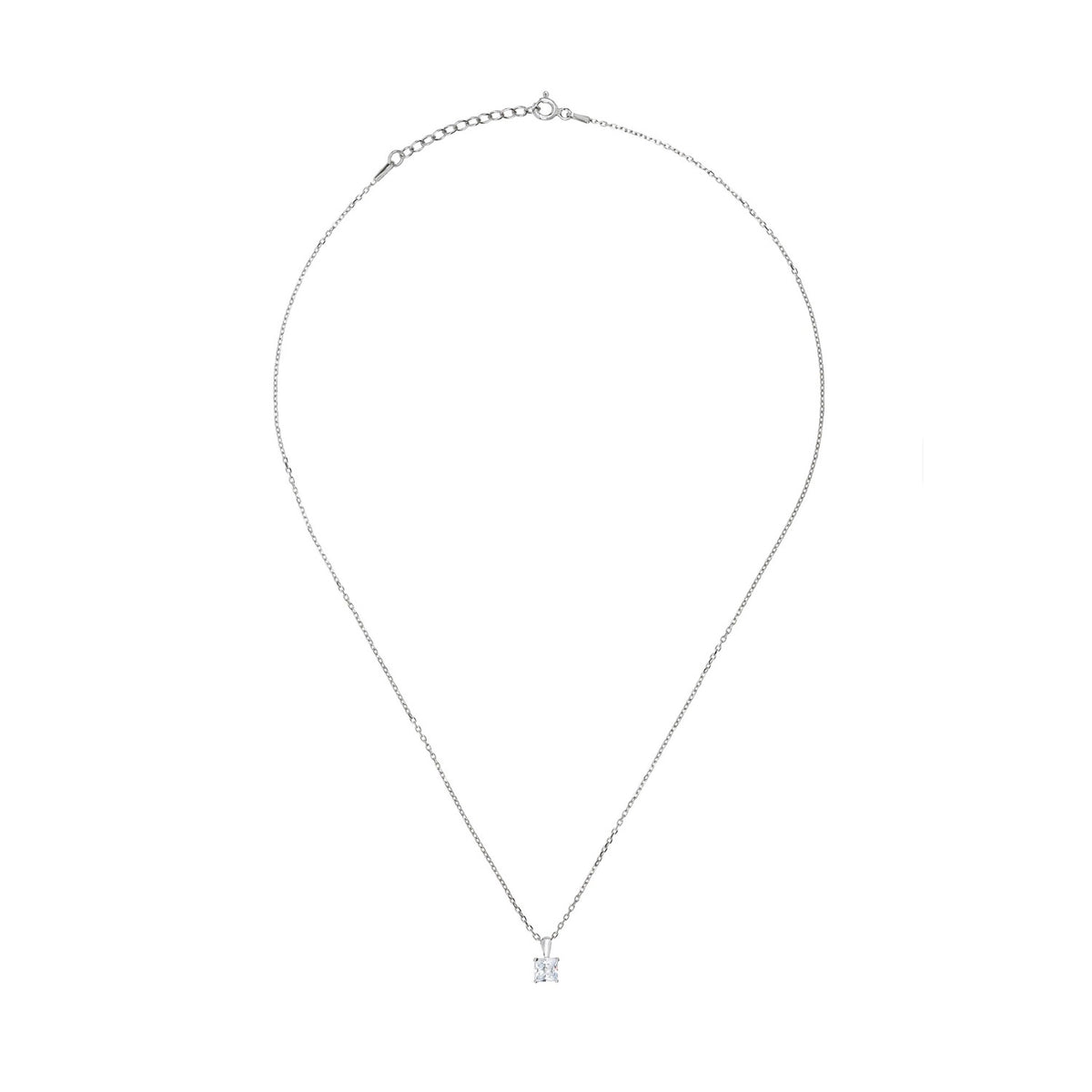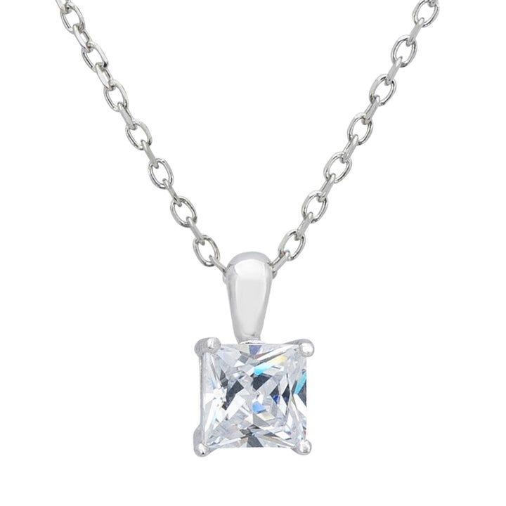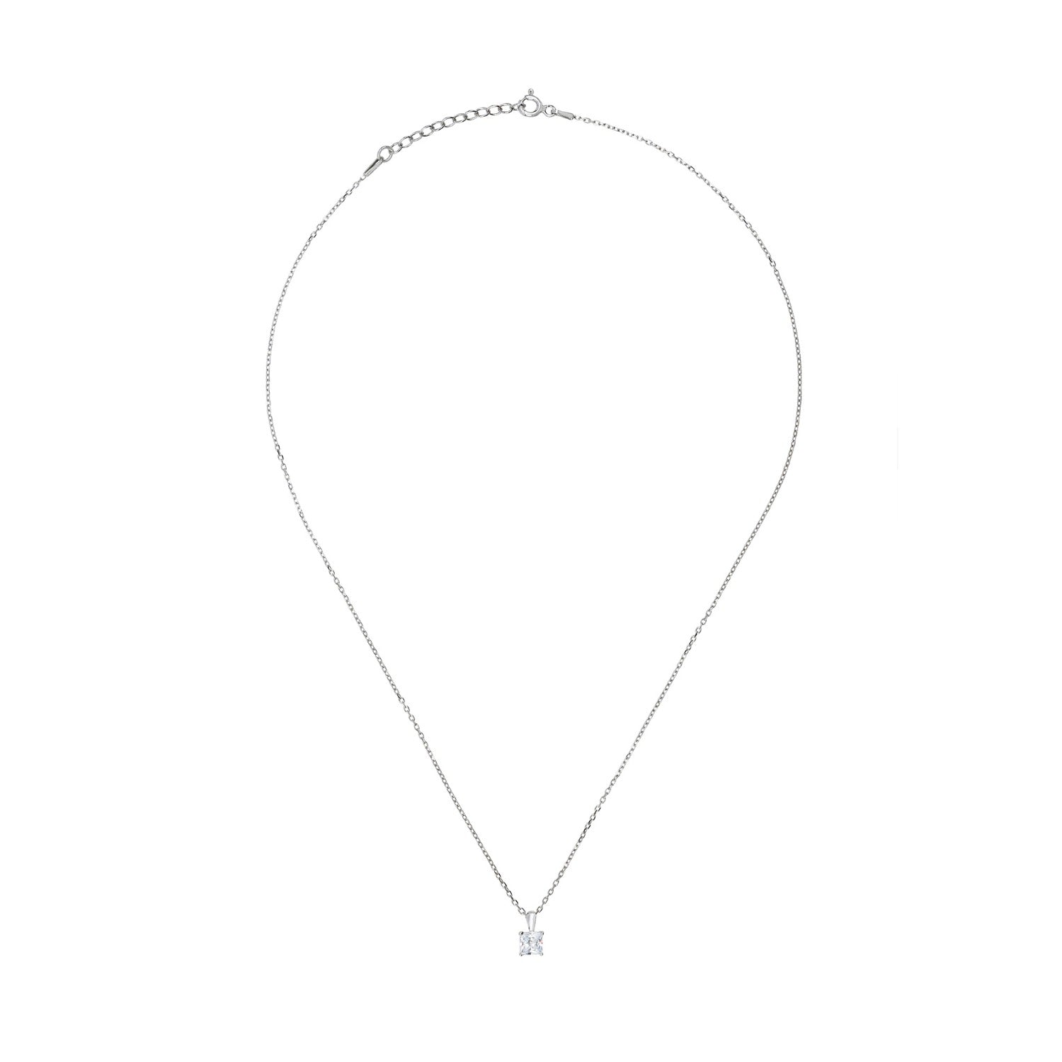 This necklace is handcrafted from 925 sterling silver and features a square cubic zirconia.