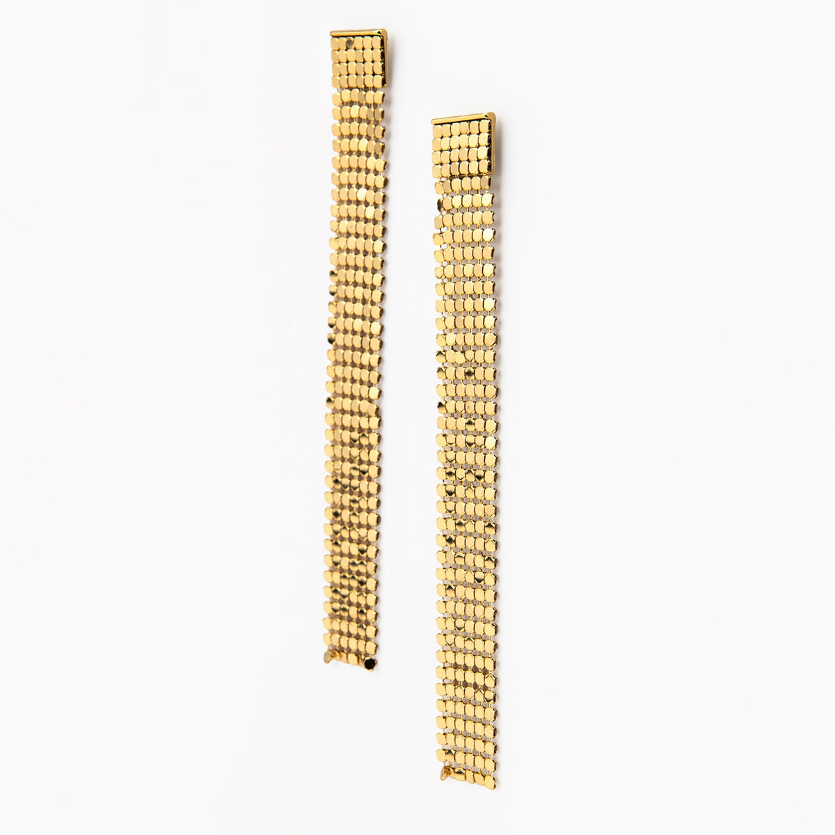 These earrings are made with real gold plated metal and have a chainmail design. They are nickel-free.