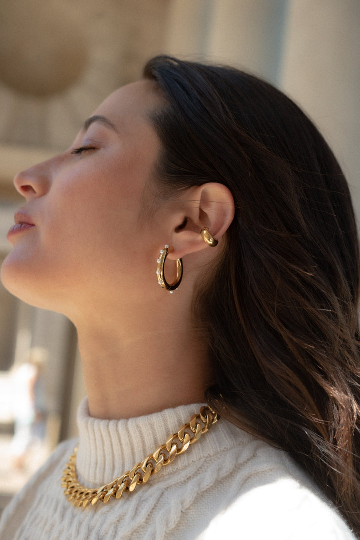 These Own Hoop Earrings by Tseatjewelry are fun and flirty, with a design that's "more pearl and gold for the soul." They feature small pearls all around the hoop, adding a lovely texture and playful touch to your look.