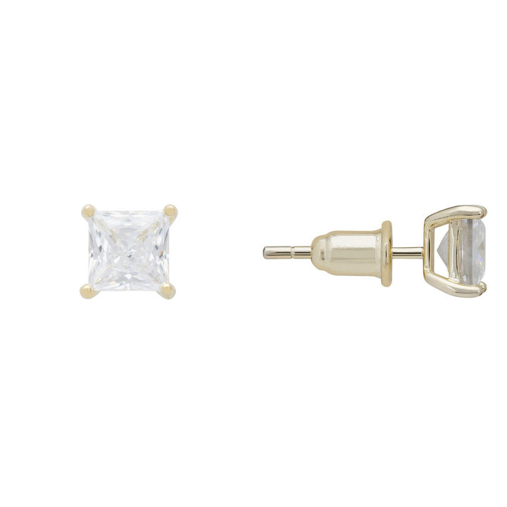 Square-Cut Solitaire Stud Earrings Moissanite Gold