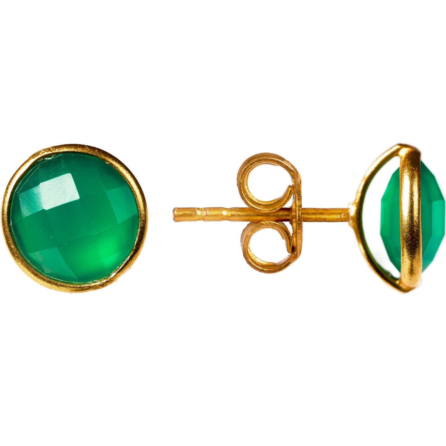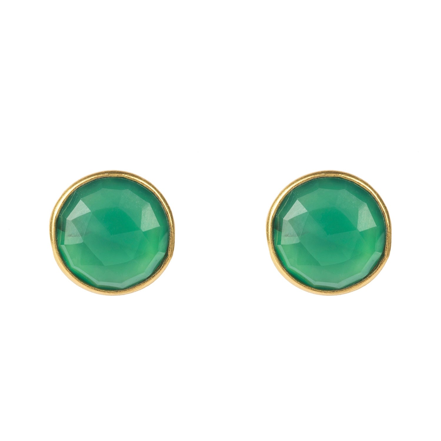 These stud earrings are handcrafted from 925 sterling silver with 18ct gold plating and feature a semi-precious natural green onyx stone.