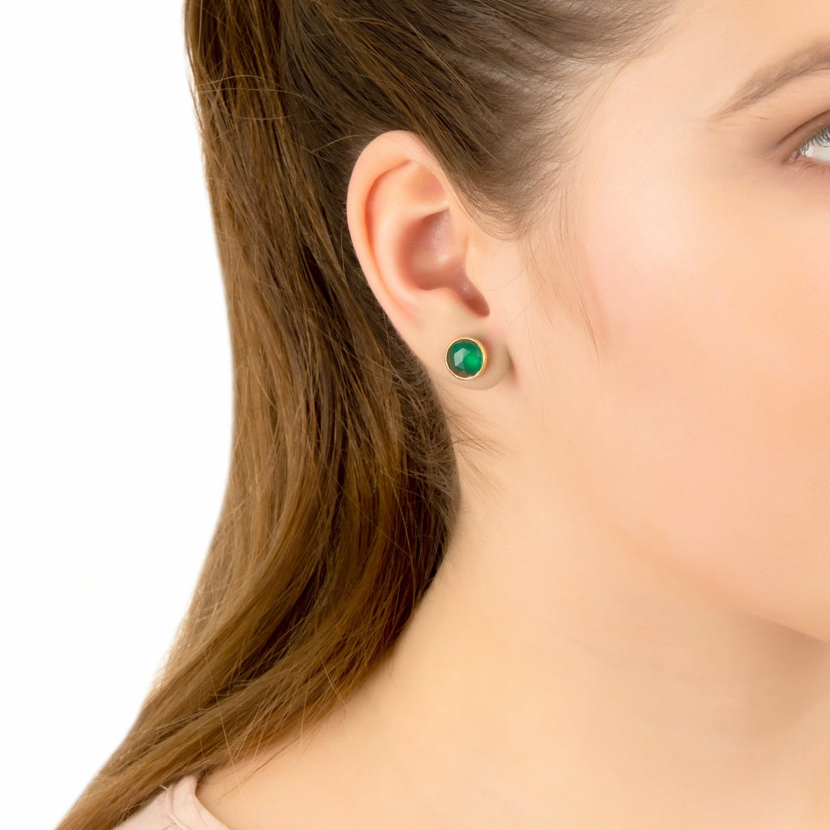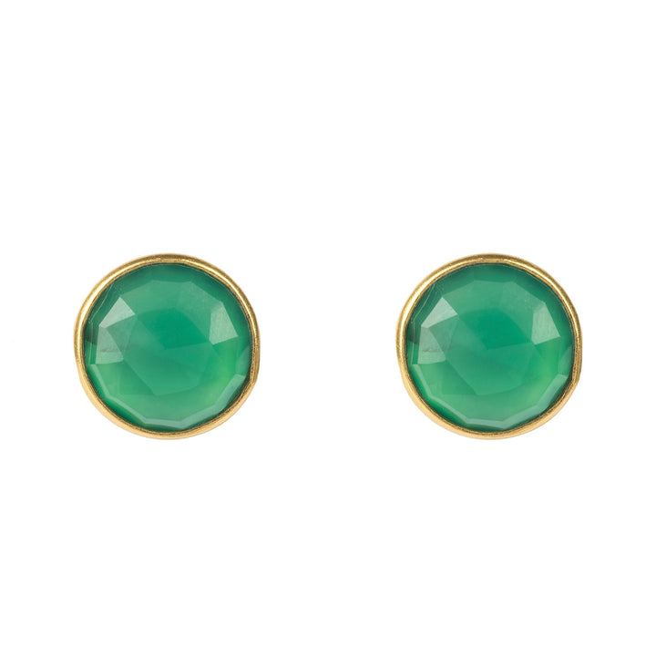 Medium Circle Stud Earrings Green Onyx Gold